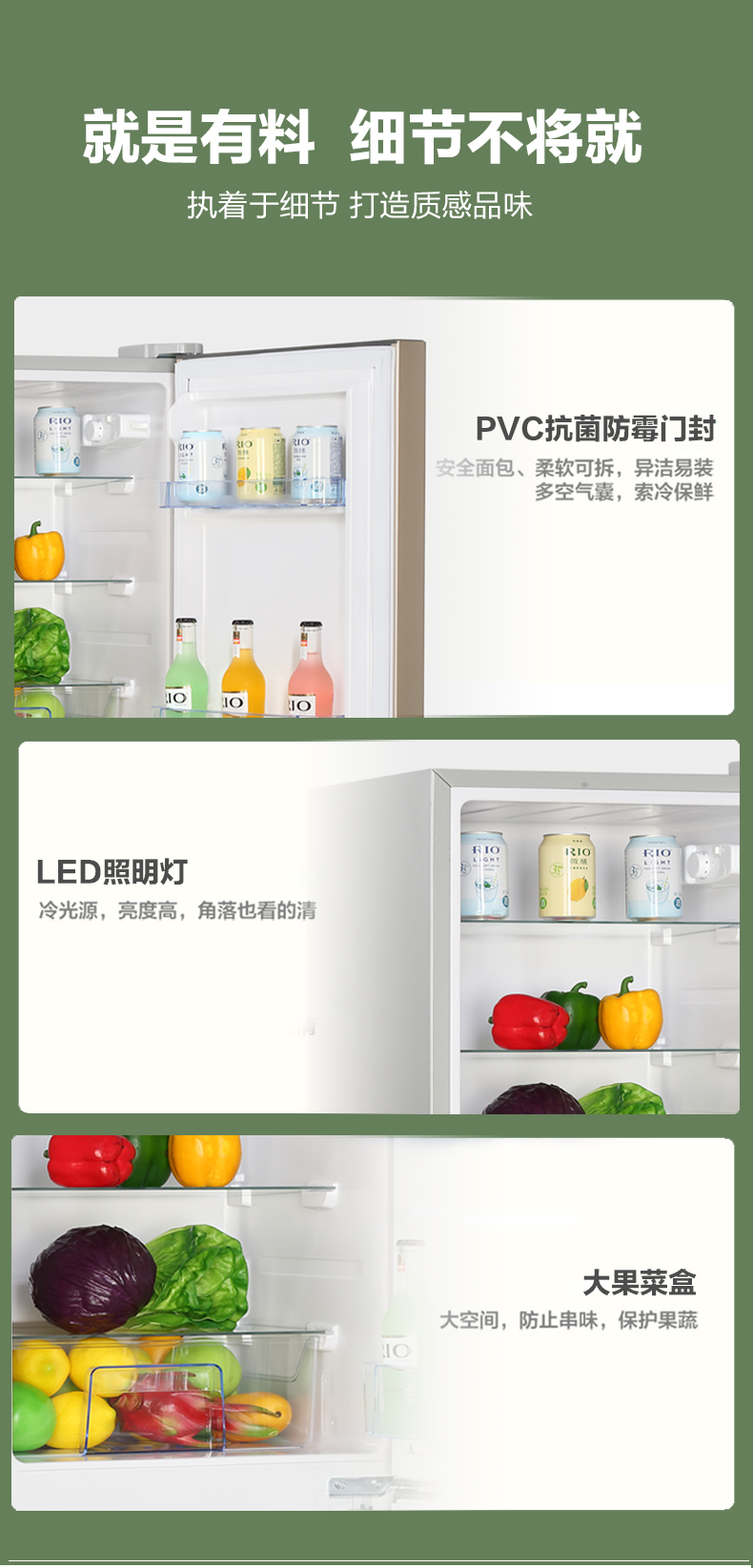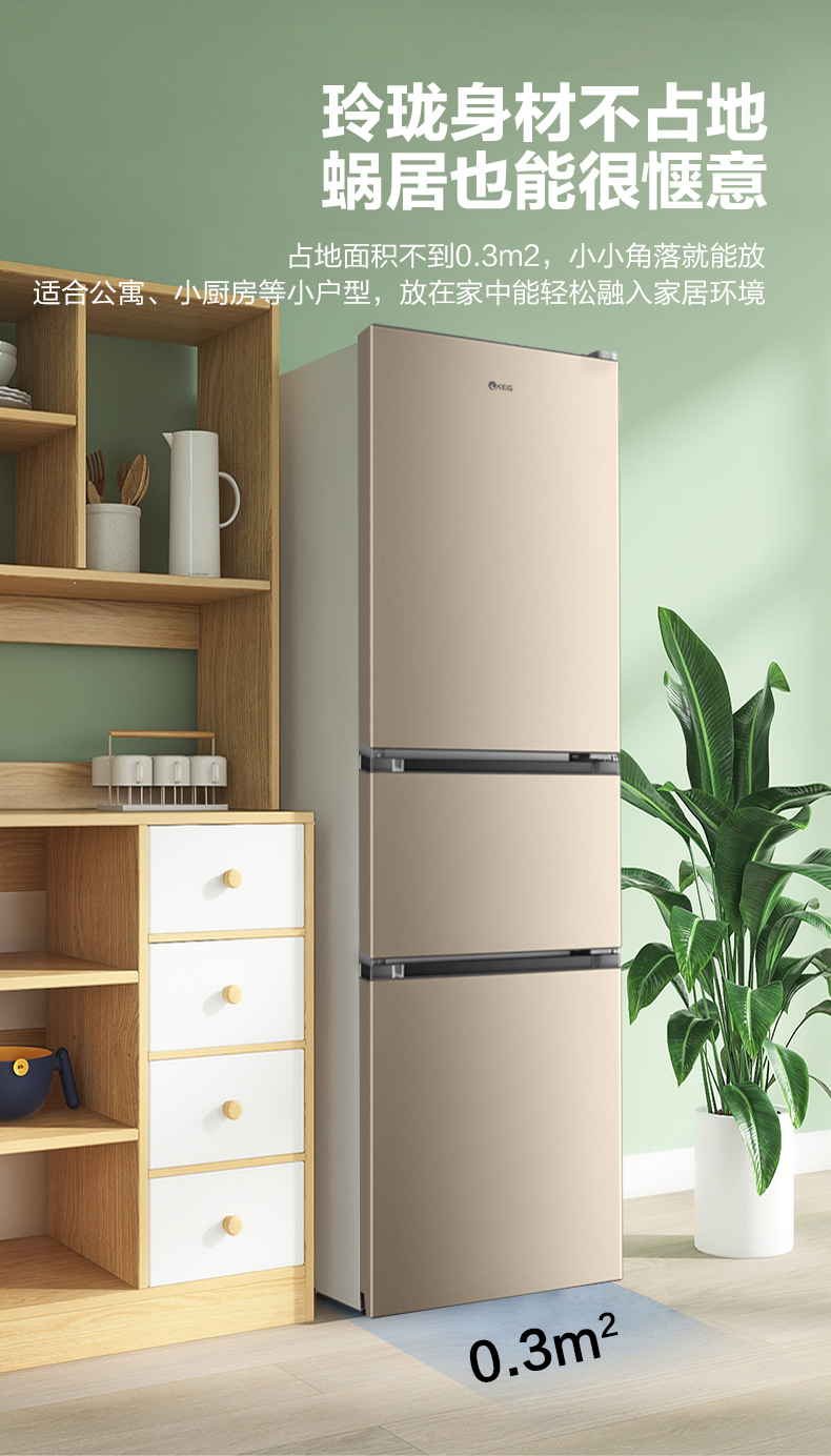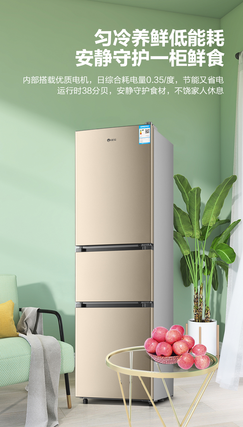 产品描述:韩电209升三门三温匀冷冰箱以其三门三温设计、匀冷技术、节能环保、智能控制、大容量设计和时尚外观等特点,成为现代家庭理想的冰箱选择。