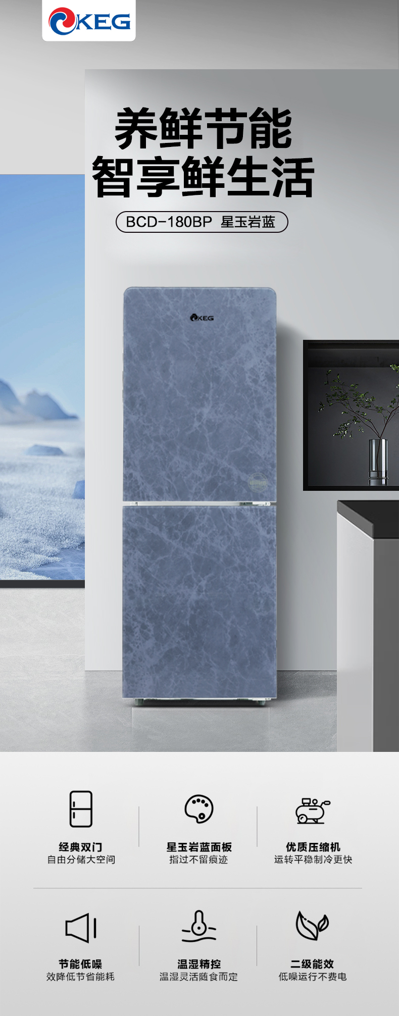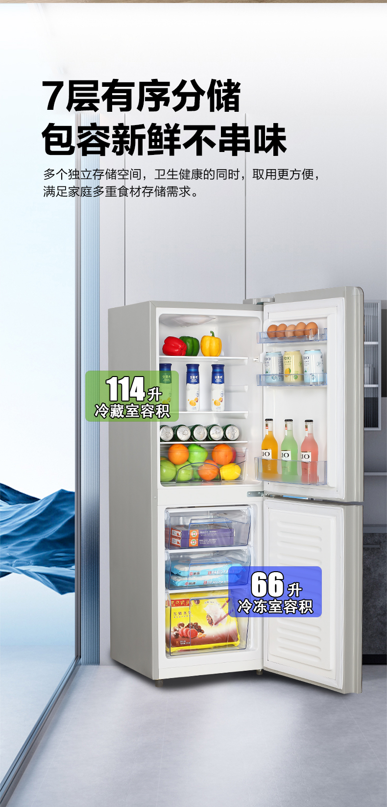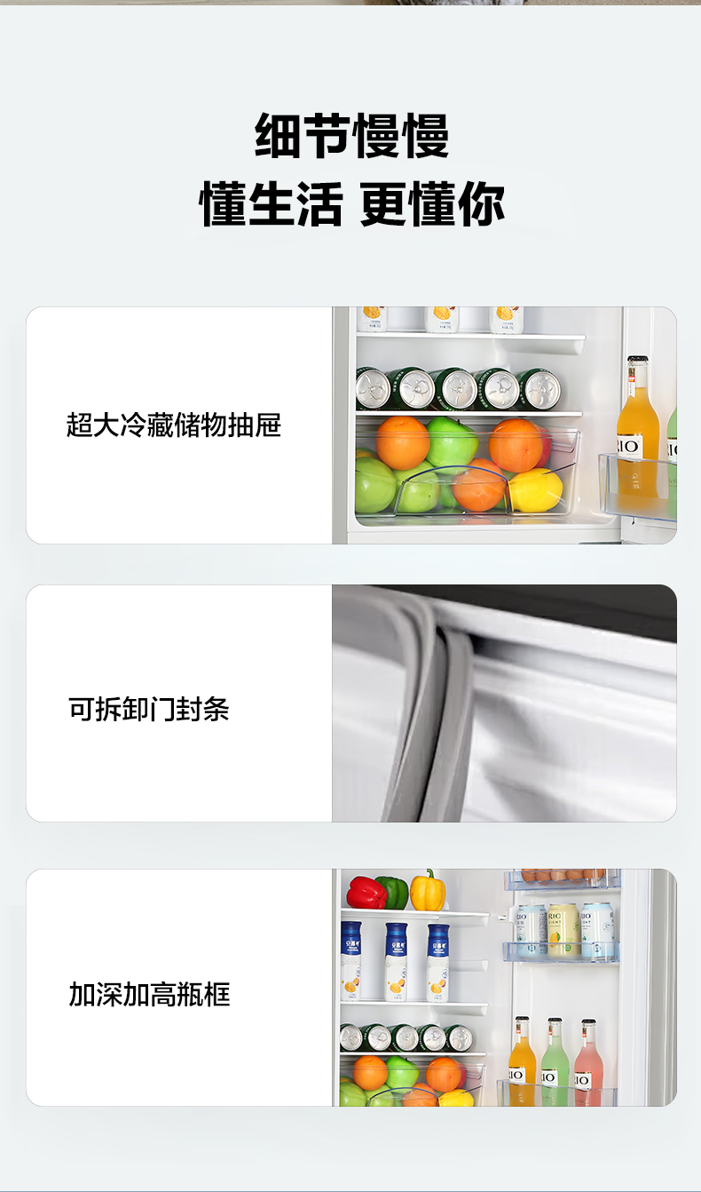 产品描述:这款180升双门冰箱。以其优雅的设计、卓越的性能和实用的功能,成为现代家庭的理想选择。