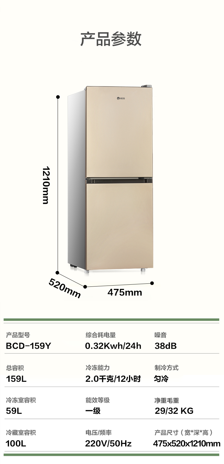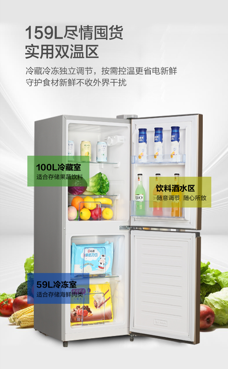 产品描述:韩电159升双门匀冷冰箱不仅具有优秀的实用性,还具有很高的审美价值。它是现代家庭的理想选择,也是送给亲朋好友的优质礼物。