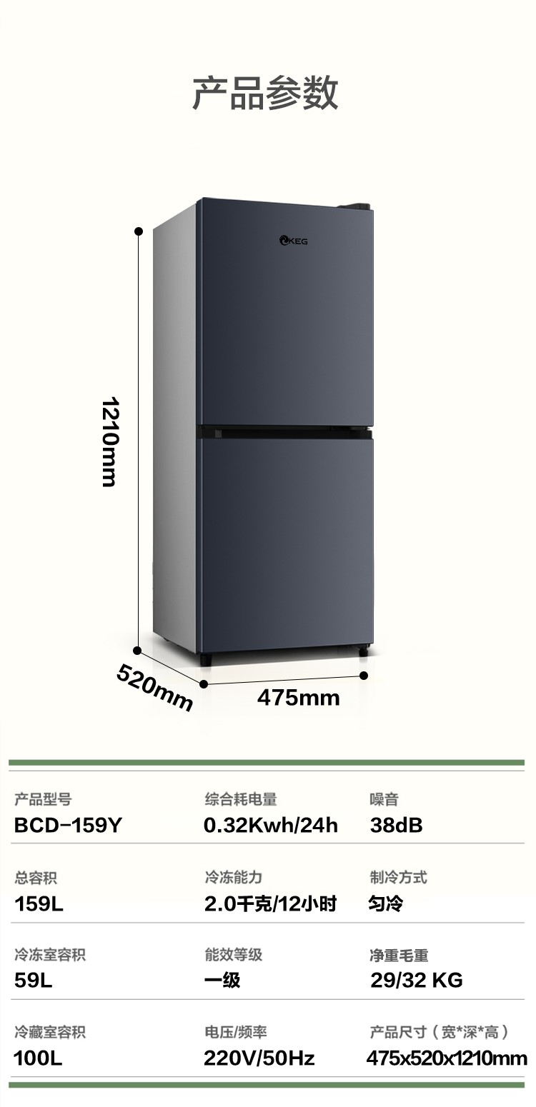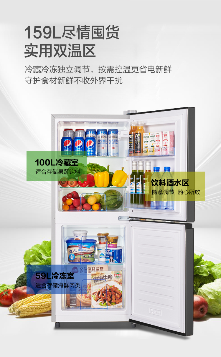 产品描述:韩电159升双门匀冷冰箱不仅具有优秀的实用性,还具有很高的审美价值。它是现代家庭的理想选择,也是送给亲朋好友的优质礼物。