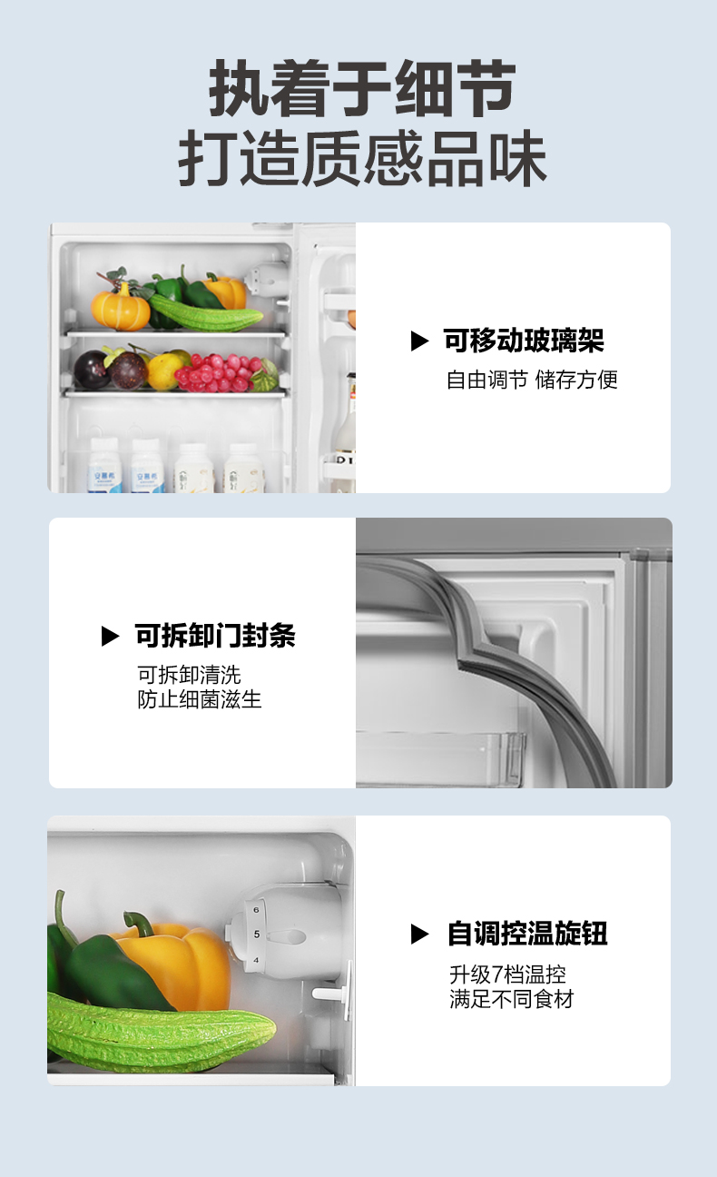 产品描述:韩电双门小冰箱具有高效的性能、节能环保的优点以及时尚的外观,成为了许多家庭和个人的理想选择。