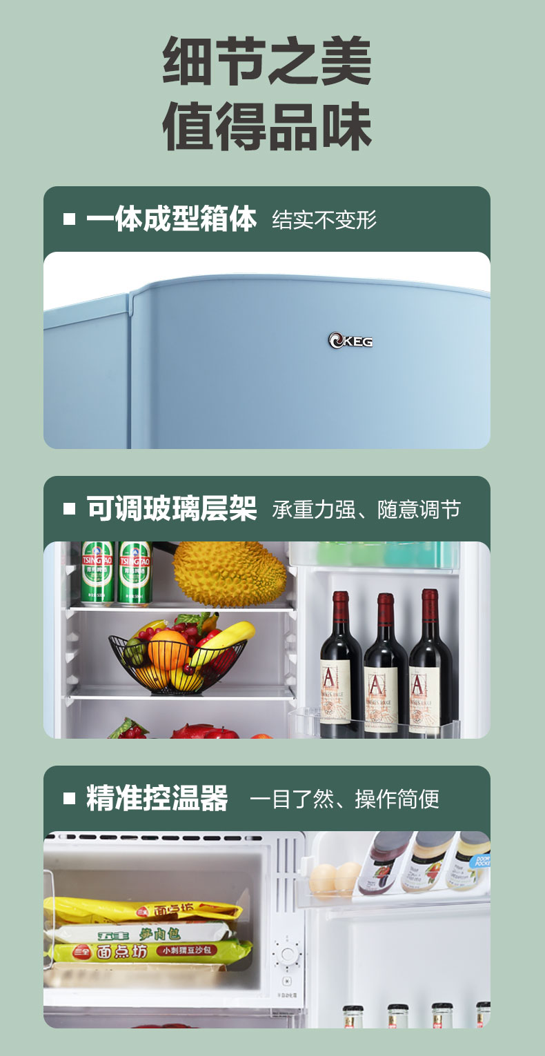 产品描述:韩电176升单门双温复古冰箱,以其独特的设计和卓越的性能,采用了先进的压缩技术和优质的绝热材料,能有效减少冷气的流失,降低能耗。同时,其静音设计,让您在使用过程中不···