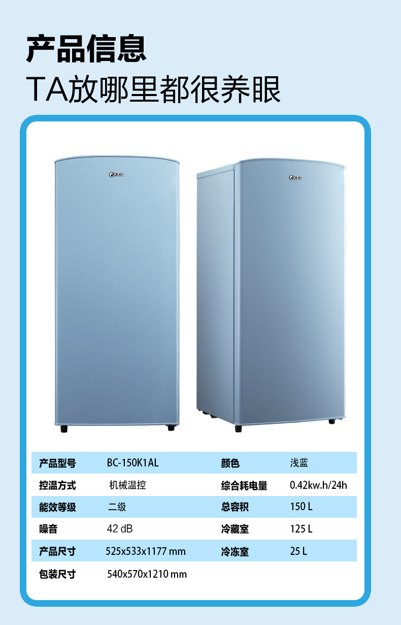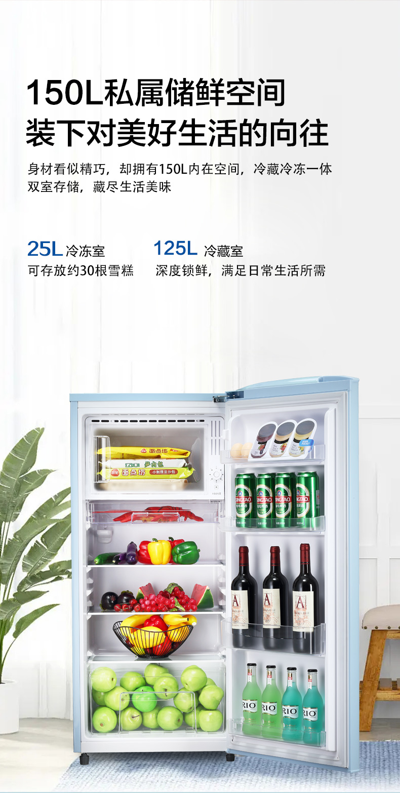 产品描述:韩电150升单门双温复古冰箱,以其独特的设计和卓越的性能,采用了先进的压缩技术和优质的绝热材料,能有效减少冷气的流失,降低能耗。同时,其静音设计,让您在使用过程中不···
