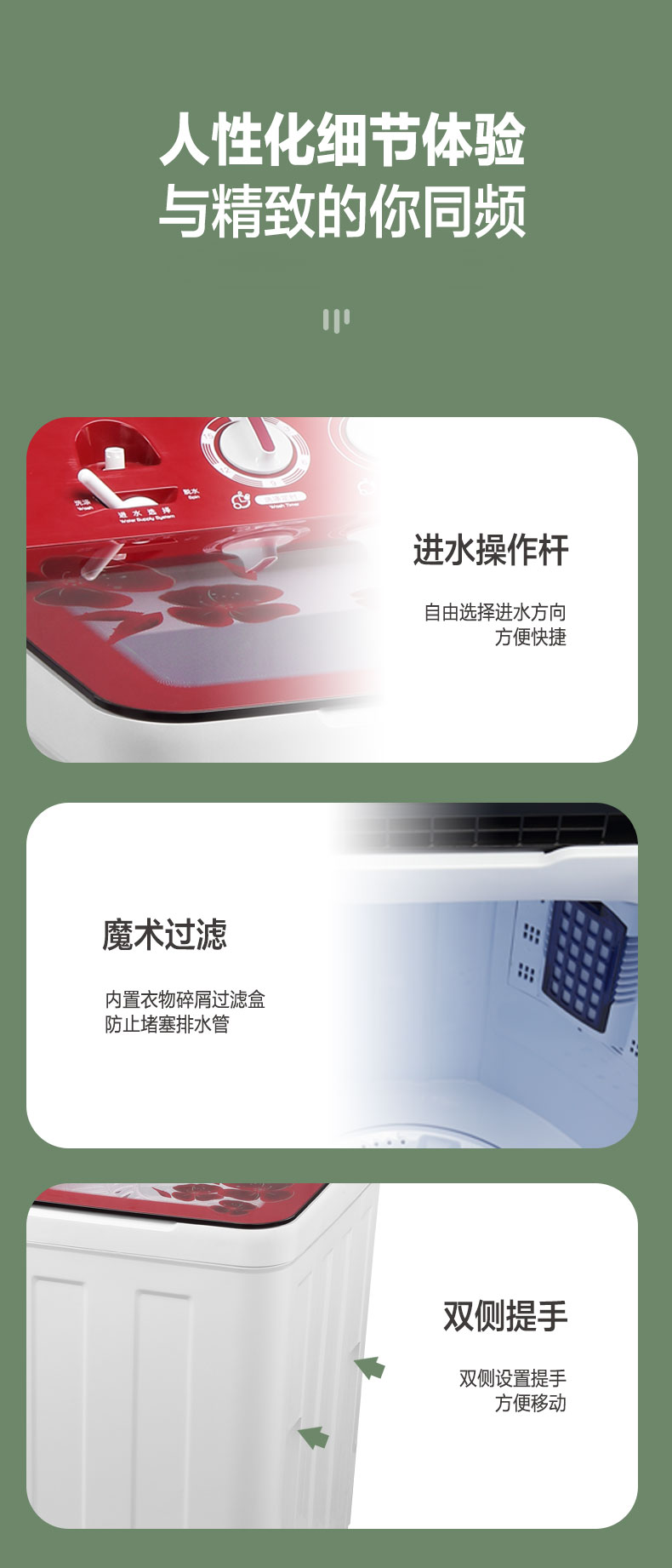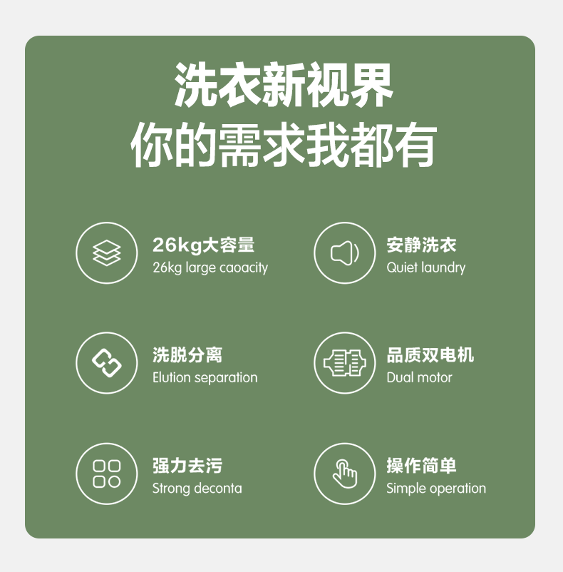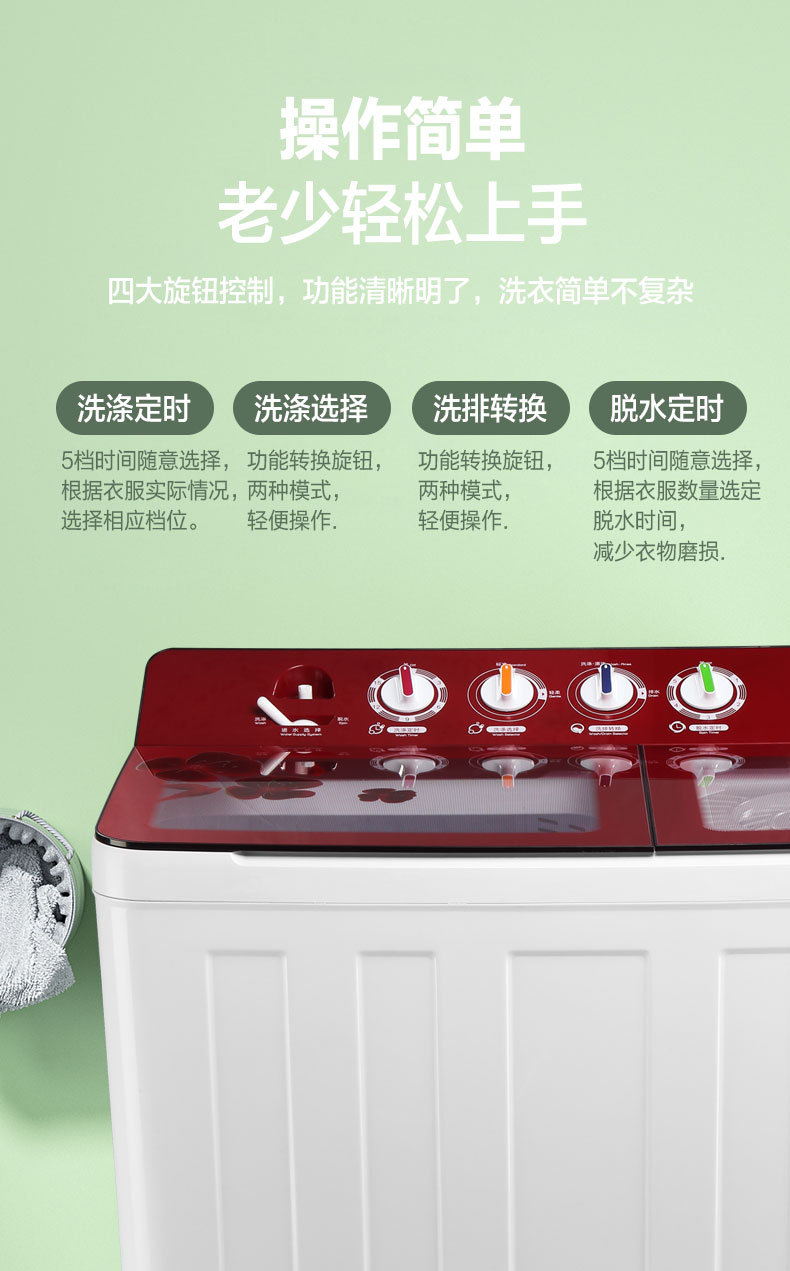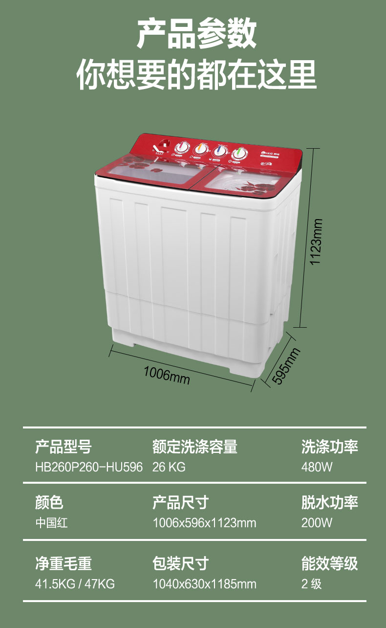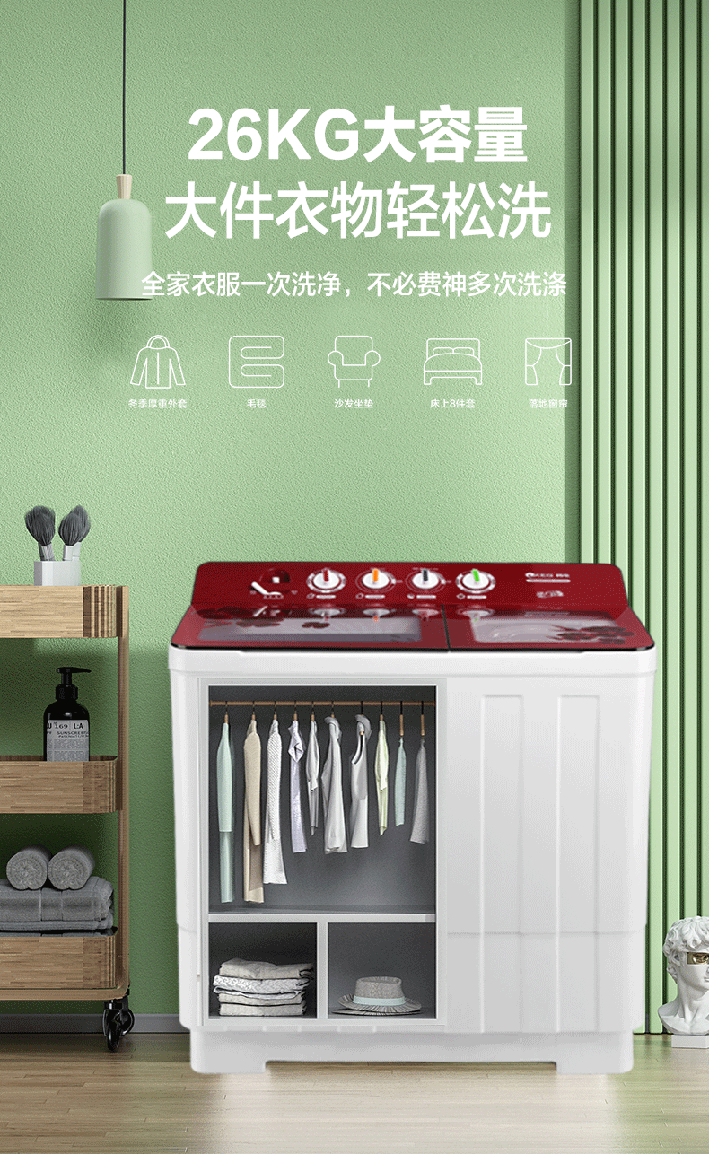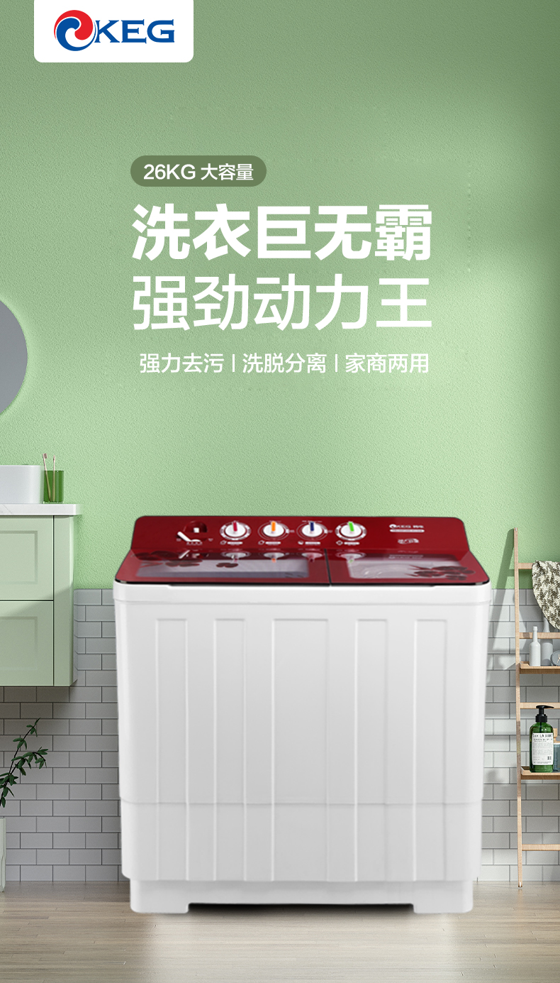 产品描述:韩电26公斤的超大双桶洗衣机,大容量优势尽显,双桶带来灵活分类洗涤功能,是家庭洗衣的得力助手,满足多样需求。