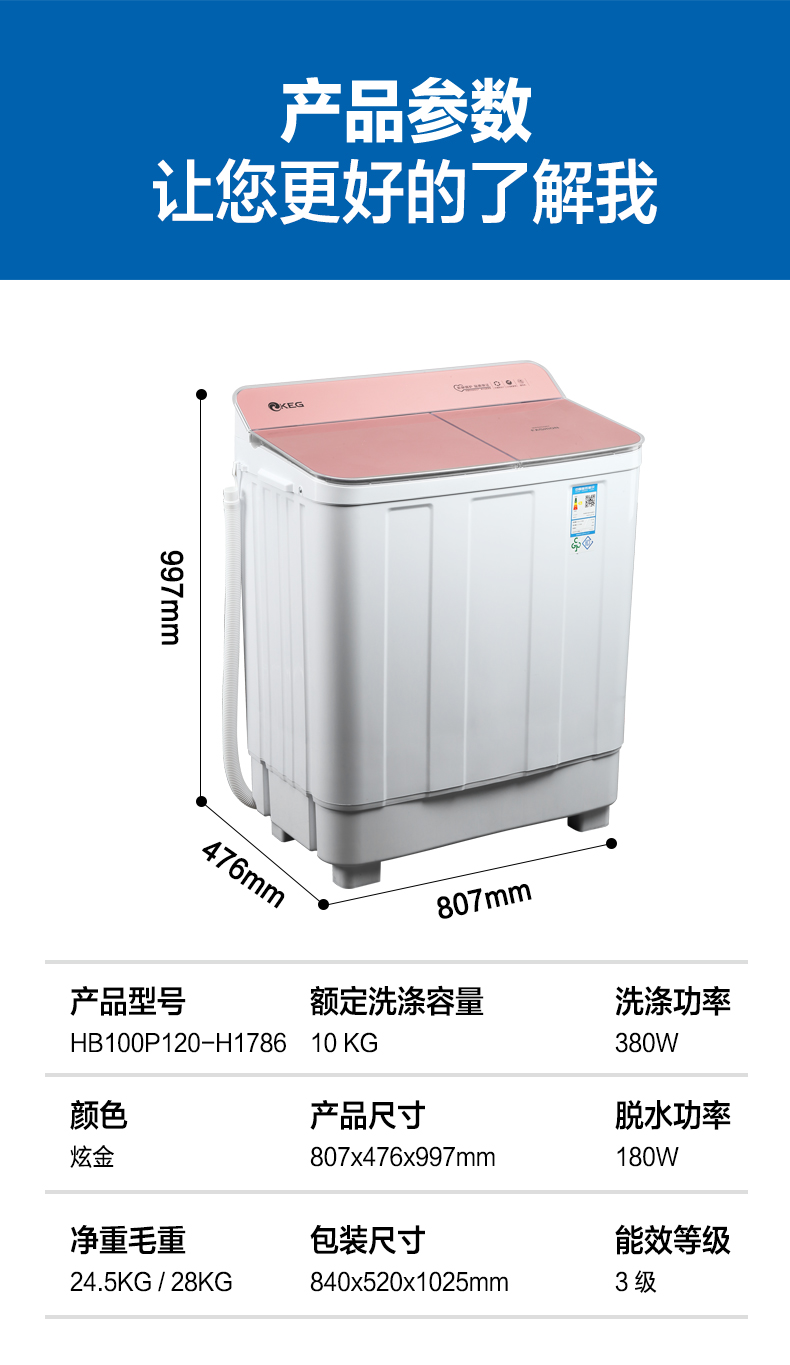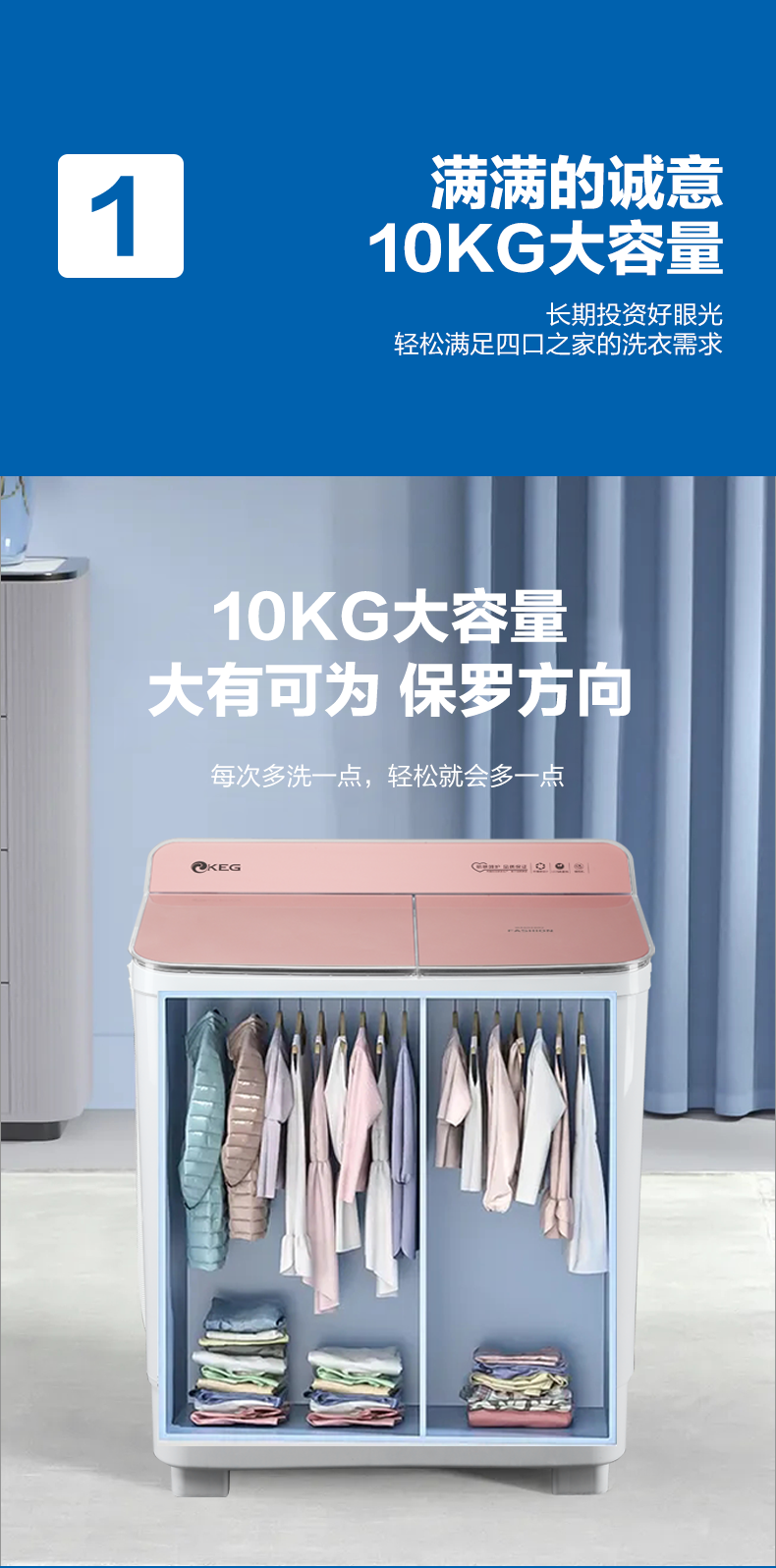产品描述:韩电10公斤的双桶洗衣机,大容量优势尽显,双桶带来灵活分类洗涤功能,是家庭洗衣的得力助手,满足多样需求。