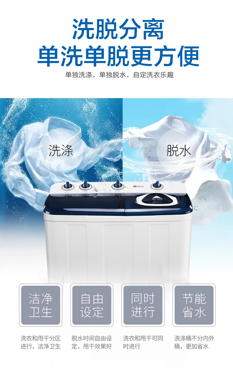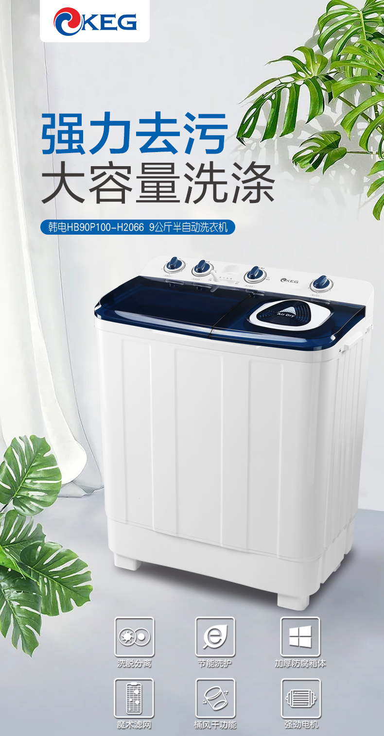 产品描述:韩电9公斤的双桶洗衣机,大容量优势尽显,双桶带来灵活分类洗涤功能,是家庭洗衣的得力助手,满足多样需求。