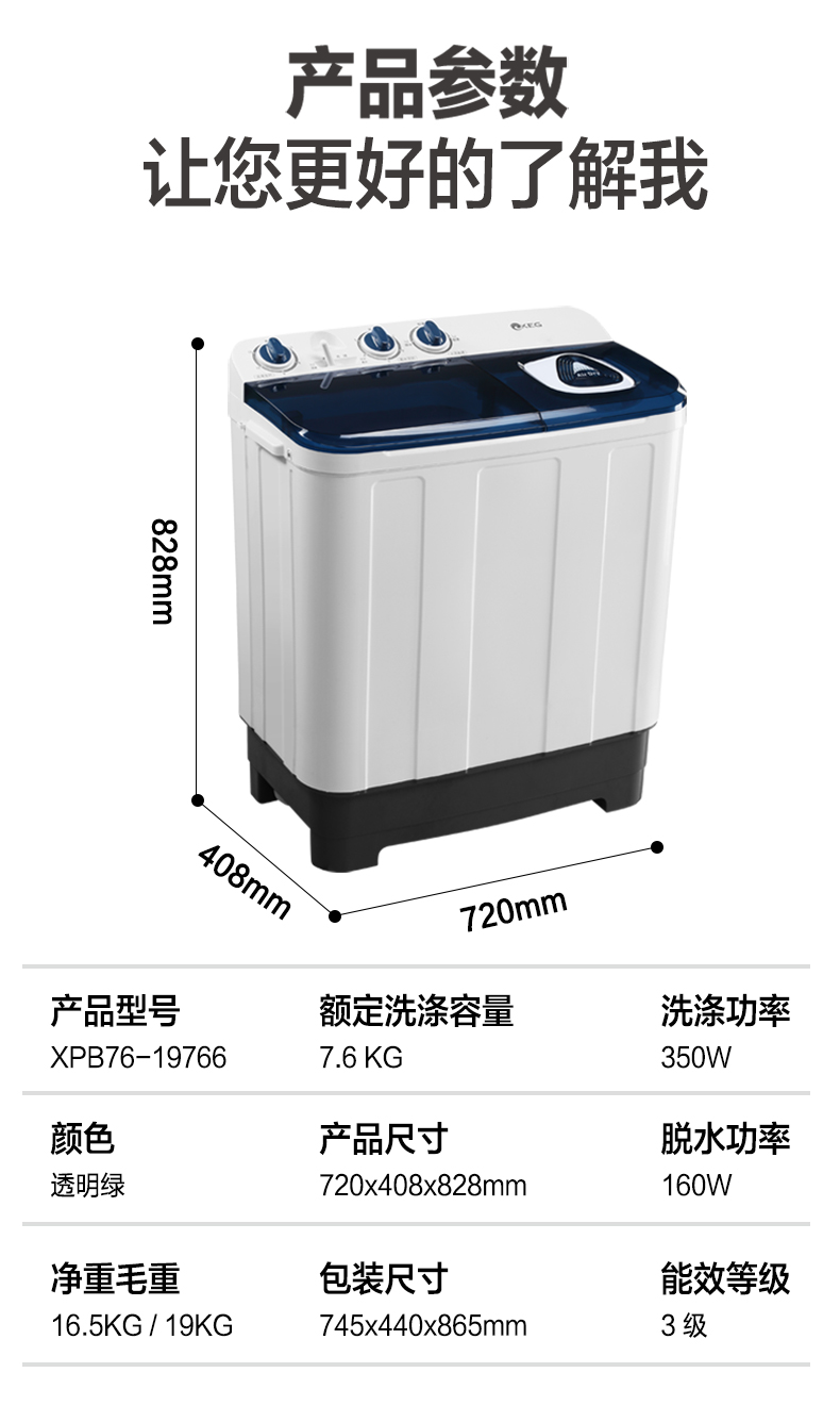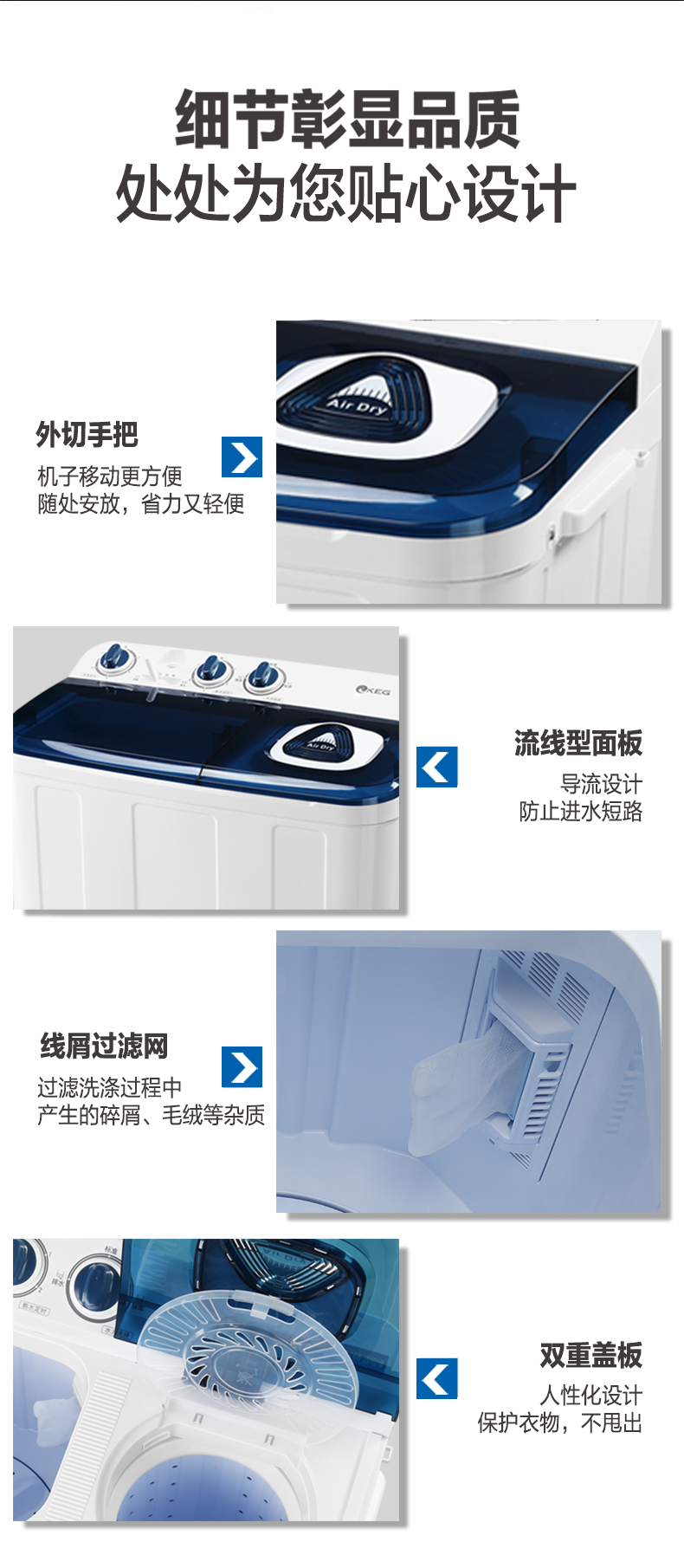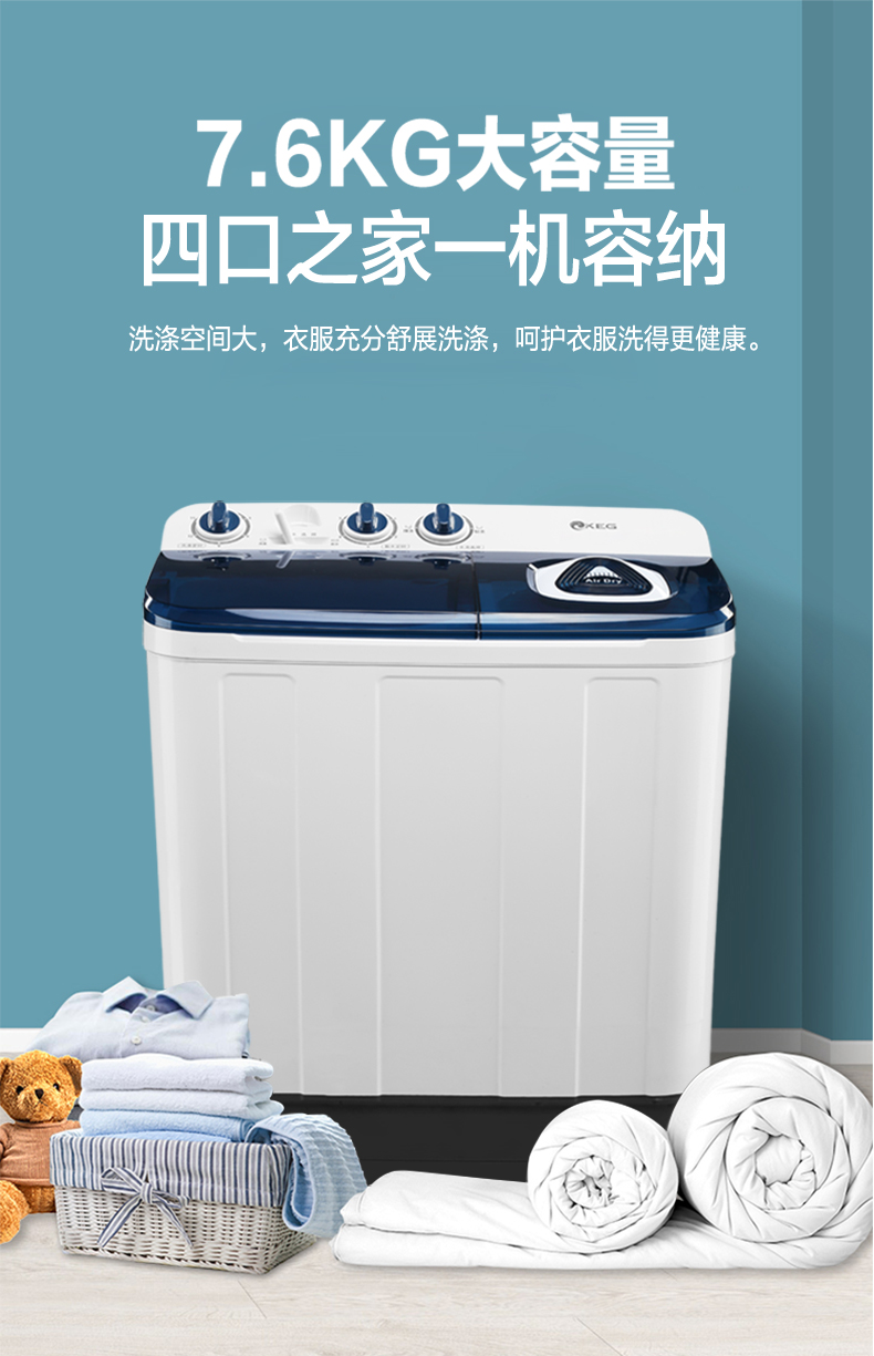 产品描述:韩电7.6公斤的双桶洗衣机,优势尽显,双桶带来灵活分类洗涤功能,是家庭洗衣的得力助手,满足多样需求。