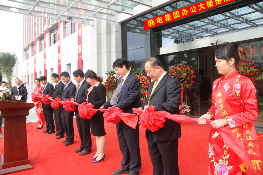 金秋十月,秋高气爽。人们在享受风和日丽的旖旎秋色之余,更多的是在于收获希望。也就是在这个人人憧憬丰收和感受喜悦的日子里,我们迎来了办公楼竣工乔迁的吉日,这是我们韩电人的一大喜事,也是公司发展史上的一个里程碑。25日早上8时,员工们列着整齐的方阵迎接典礼的开始,出席本次庆典的有集团董事长、副董事长、总裁以及4家子公司的总经理等。