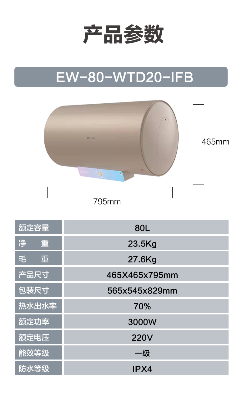 产品描述:韩电80升热水器拥有快速加热功能,让您无需漫长等待即可享受热水;精准控温技术,确保水温稳定舒适;大容量设计满足全家用水需求;高效节能,为您节省电费开支;安全防护系···