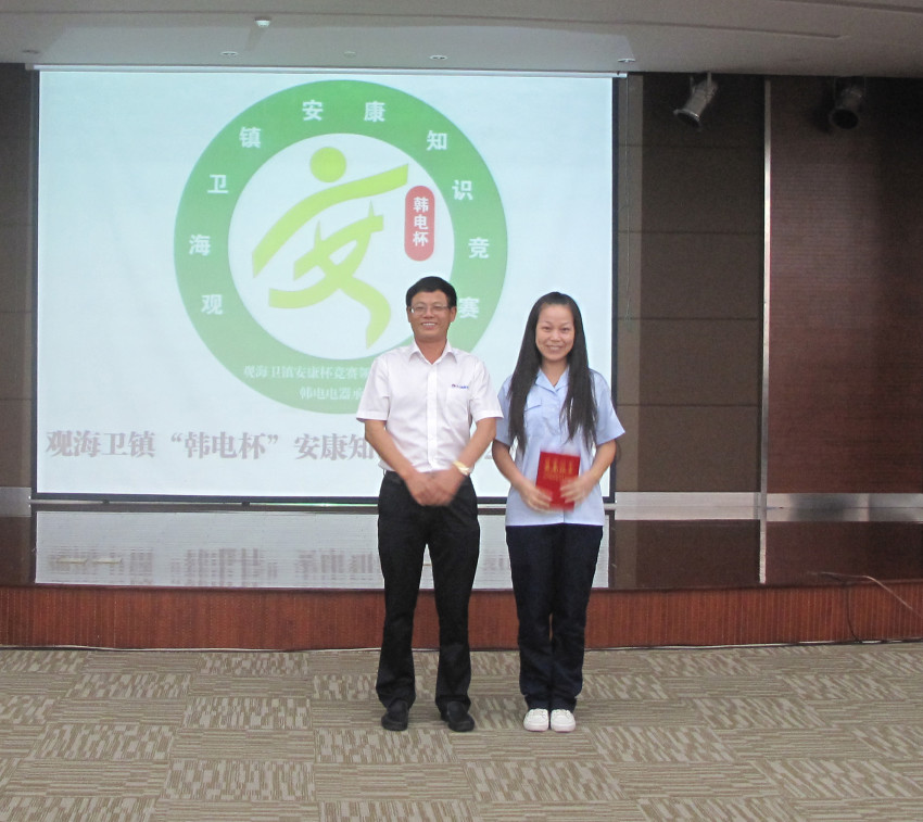 为进一步推进“安康杯”竞赛活动的深入开展,宣传“安全第一、预防为主、综合治理”的方针,提高中小微企业和职工的参赛积极性,2014年8月22日,由观海卫镇安康知识竞赛领导小组主办、宁波韩电电器有限公司承办的“观海卫镇‘韩电杯’安康知识竞赛”在韩电集团总部多功能厅隆重举行。18支来自各企事业单位代表队参加比赛。
