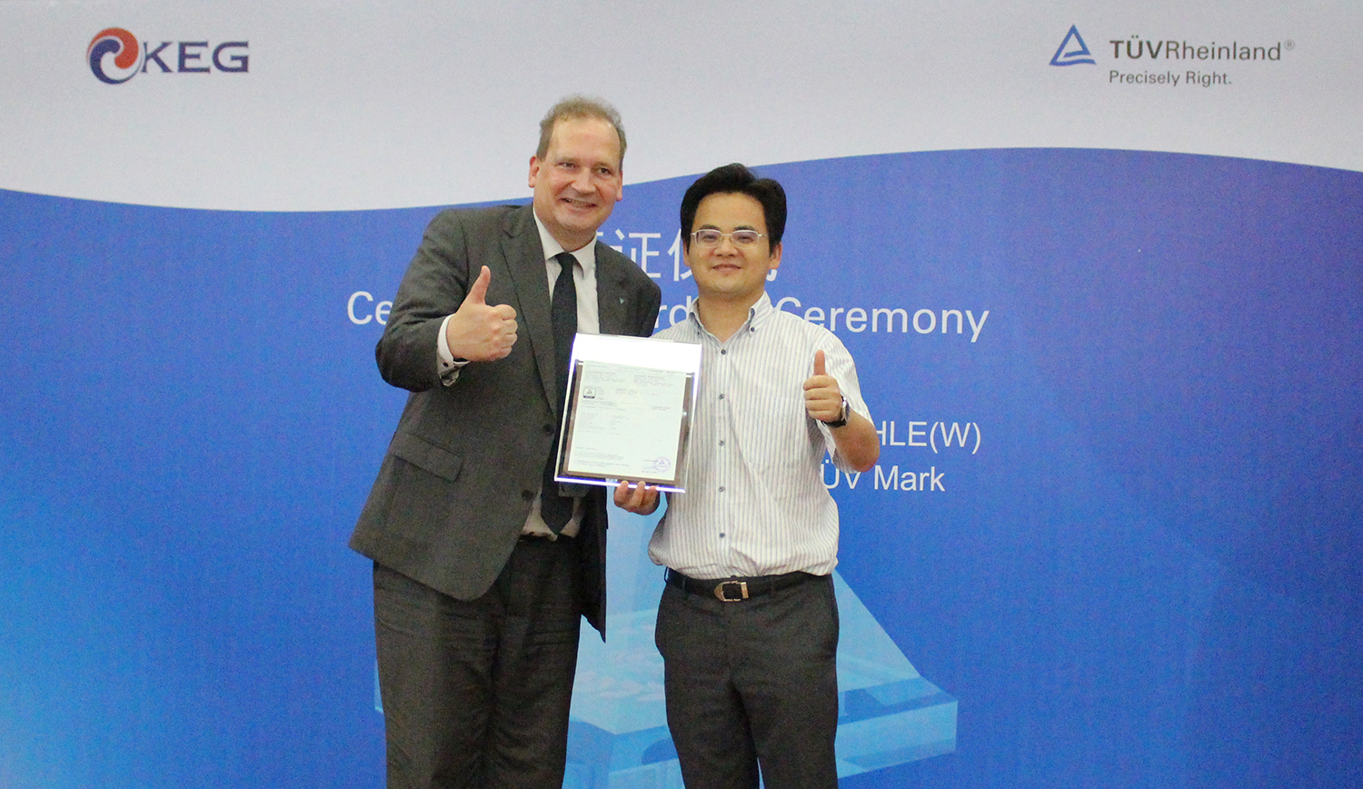 2019年6月27日,德国莱茵TÜV生态设计能效TUV Mark认证颁证仪式在韩电集团总部隆重举行。德国莱茵TÜV大中华区高级副总裁、莱茵宁波公司总经理陶思腾博士,韩电集团总裁沈凯峰出席颁证仪式。这也是德国莱茵TÜV针对冰箱产品颁发的首张TUV Mark证书。