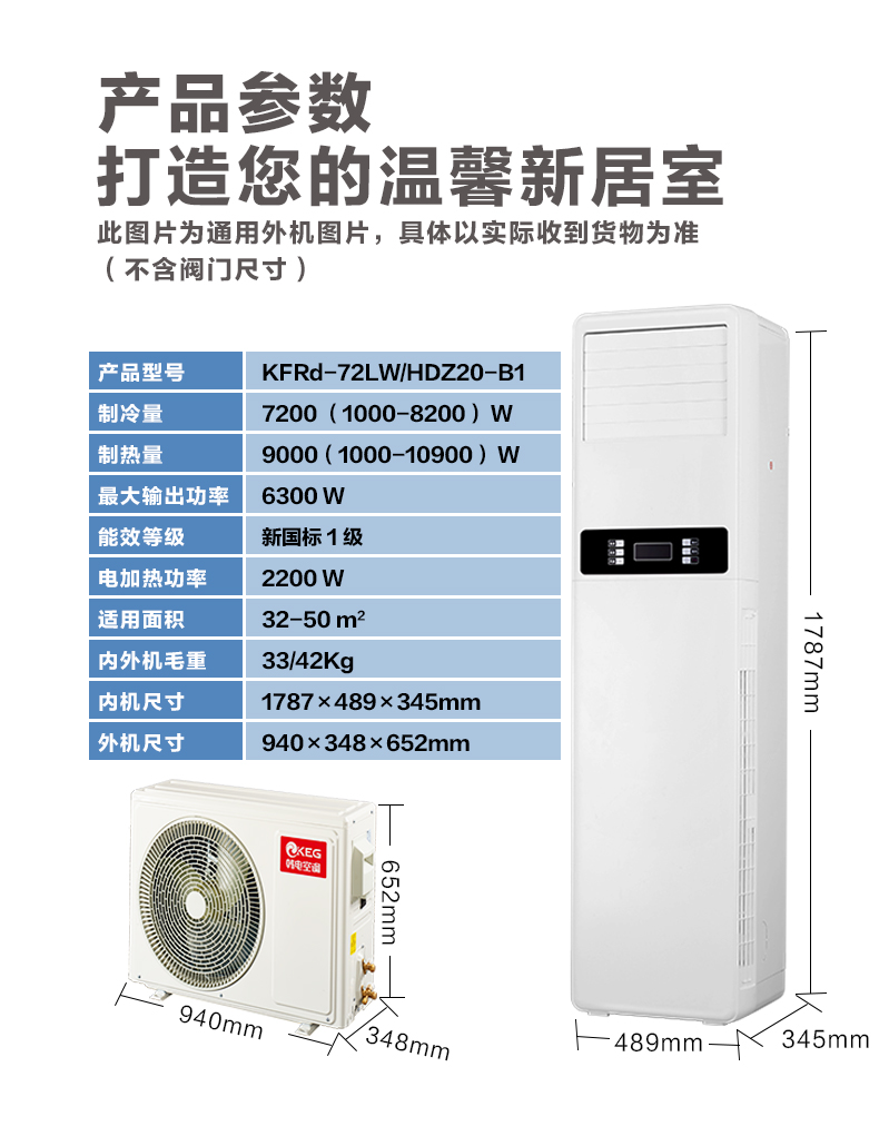 产品描述:3匹立式变频空调,强劲冷暖、高效节能,智能控温、舒适静音,时尚外观,适合大空间使用,为您打造温馨舒适的家居环境。