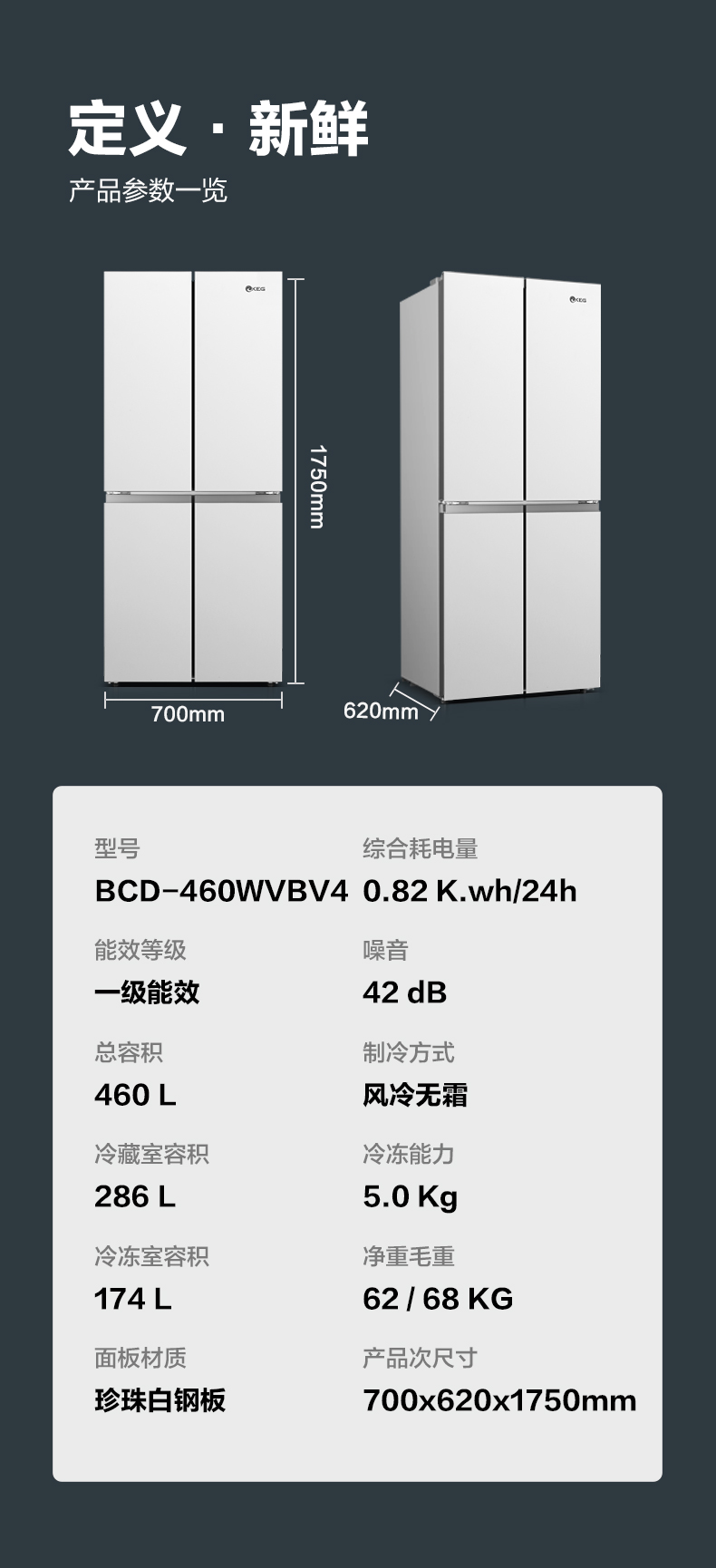 产品描述:韩电460升十字风冷变频冰箱不仅是厨房的得力助手,更是家庭生活的升级之选。无论是性能、设计还是功能,都展现了其卓越的品质和实力。选择它,让您的生活更加美好和便捷!