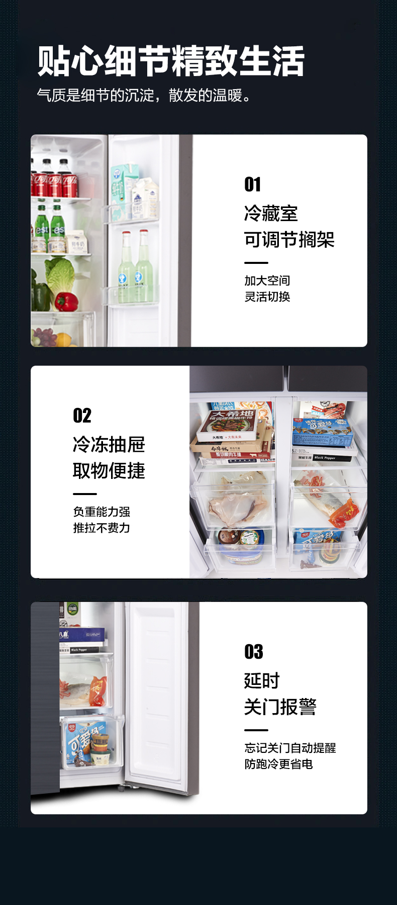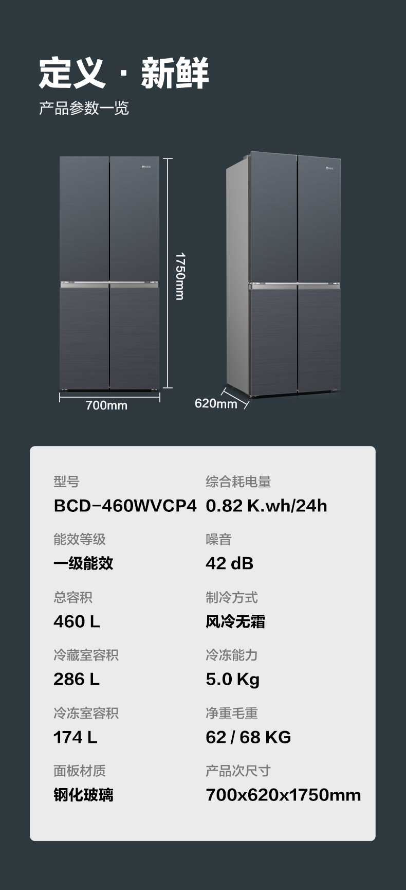 产品描述:韩电460升十字风冷变频冰箱不仅是厨房的得力助手,更是家庭生活的升级之选。无论是性能、设计还是功能,都展现了其卓越的品质和实力。选择它,让您的生活更加美好和便捷!