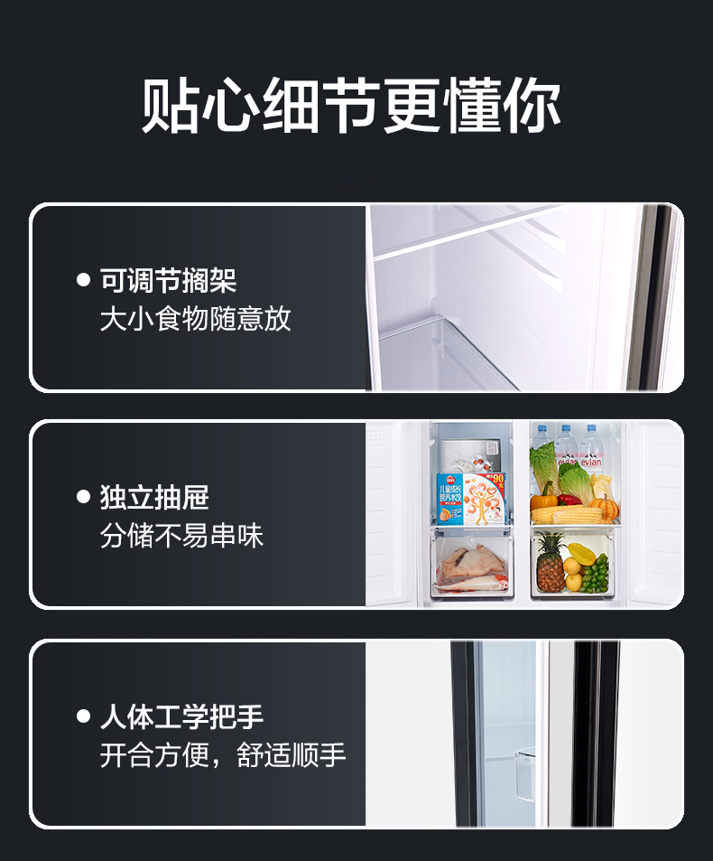 产品描述:韩电480升对开门风冷变频冰箱不仅是厨房的得力助手,更是家庭生活的升级之选。无论是性能、设计还是功能,都展现了其卓越的品质和实力。选择它,让您的生活更加美好和便捷!···