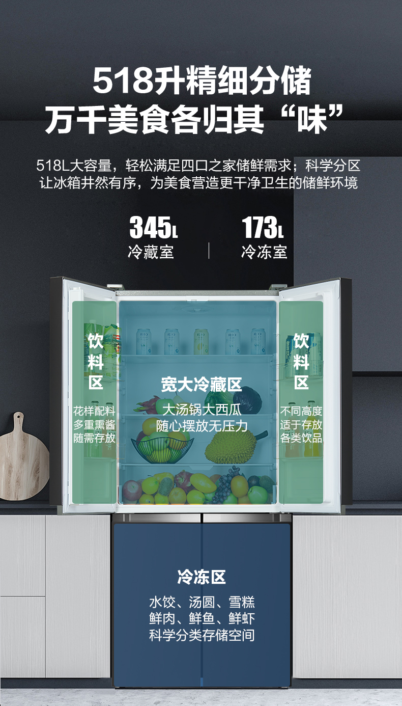 产品描述:韩电518升十字风冷冰箱凭借其全方位的冷气循环、无霜技术、智能温控系统、节能环保特性、大容量储存空间、安全门锁设计、易于清洁以及时尚的外观设计等卖点,成为了现代家庭···