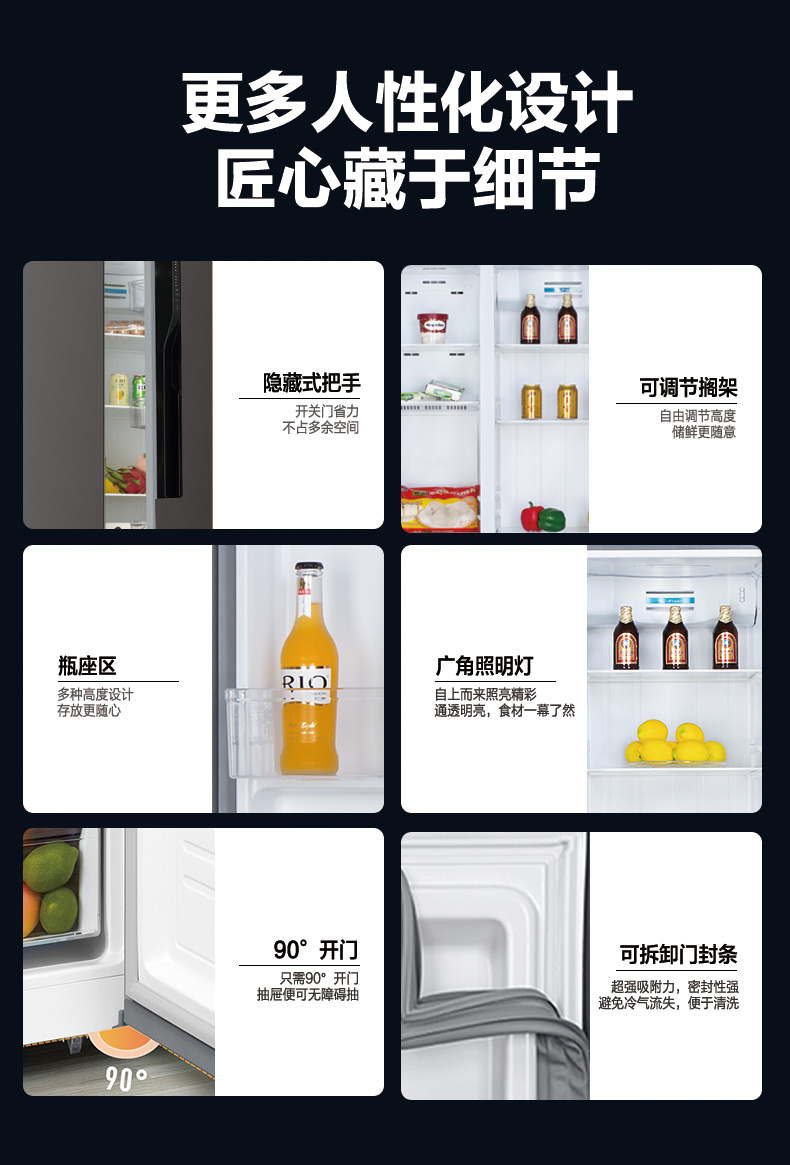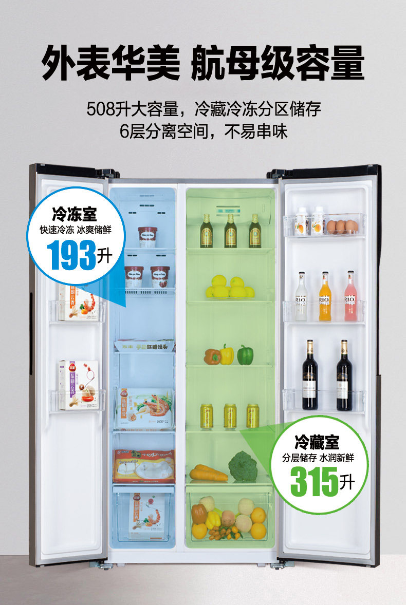 产品描述:韩电508升对开门字风冷冰箱凭借其双对开门设计、风冷无霜技术、大容量储存空间、节能环保、智能控制、静音运行以及时尚外观设计等卖点,成为了现代家庭理想的食品储存设备。···