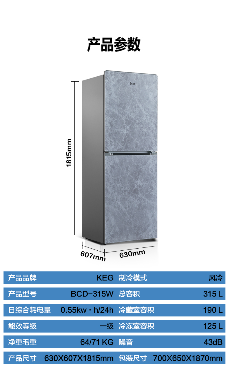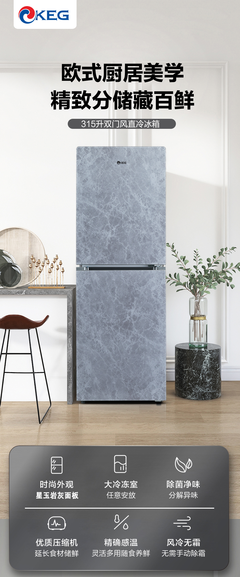 产品描述:韩电315升双门风直冷冰箱凭借其高效制冷、节能环保、超大容积、智能控制、静音运行、防串味设计、易清洁维护和时尚外观设计,可以与各种家居风格完美融合。