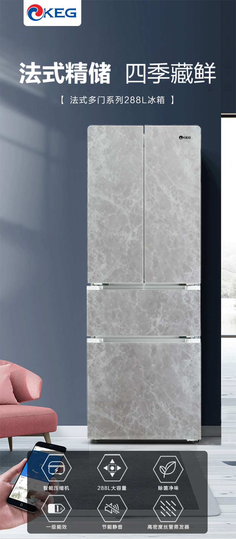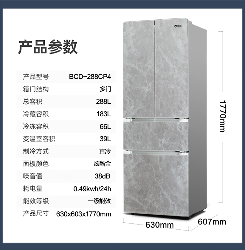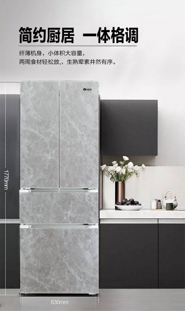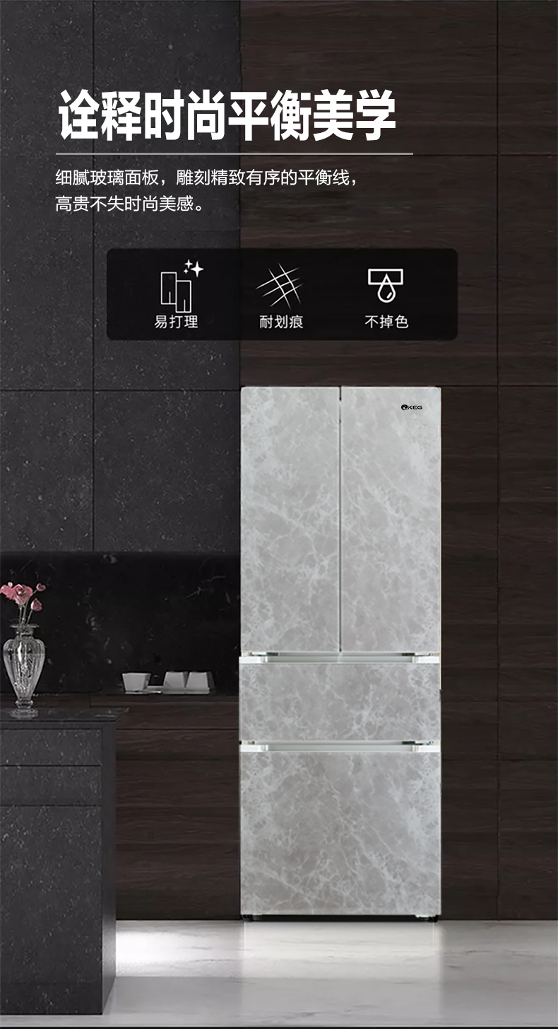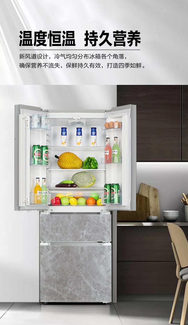 产品描述:韩电288升法式多门冰箱凭借其空间优化、食品保鲜、便利性、时尚外观和节能环保等卖点,成为现代家庭厨房的理想选择。