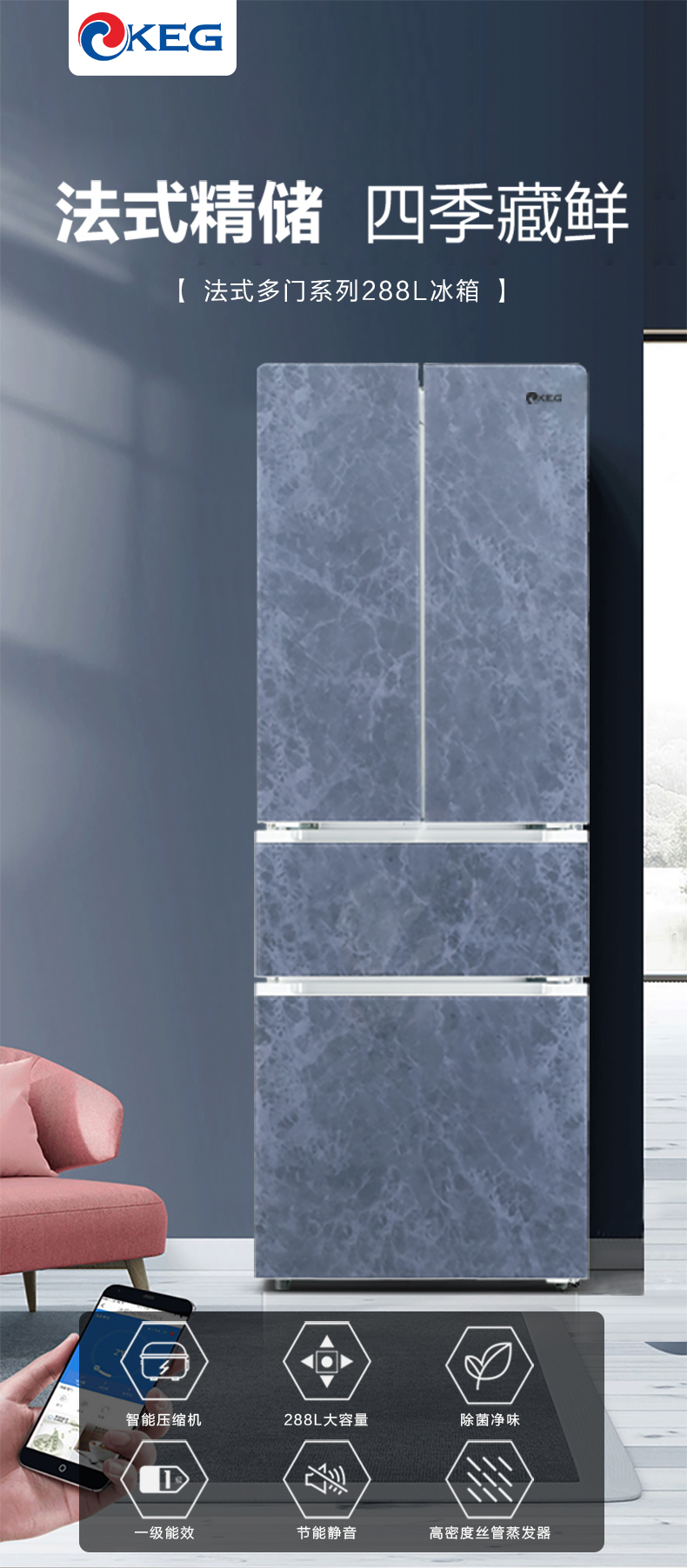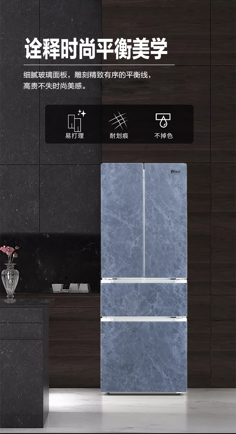 产品描述:韩电288升法式多门冰箱凭借其空间优化、食品保鲜、便利性、时尚外观和节能环保等卖点,成为现代家庭厨房的理想选择。