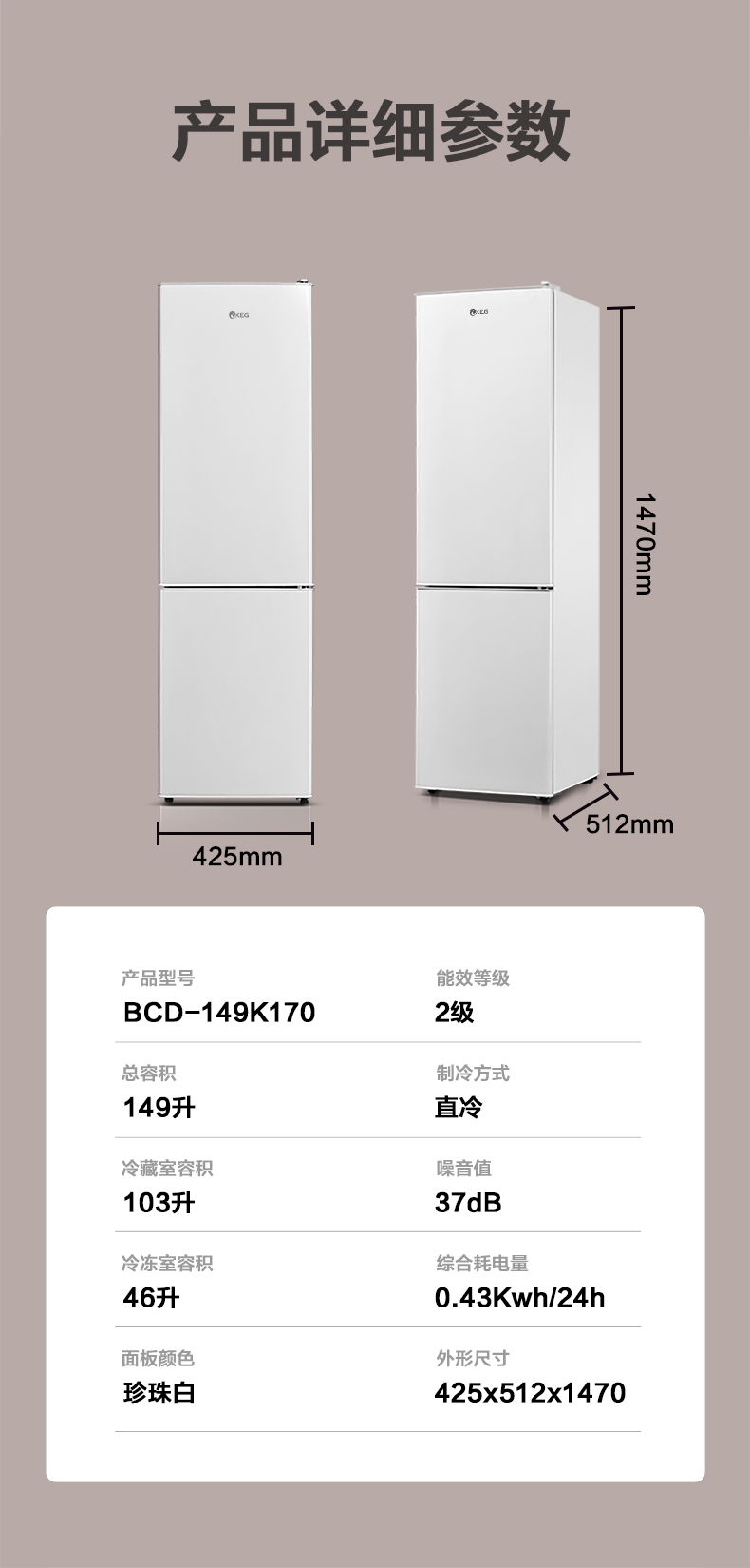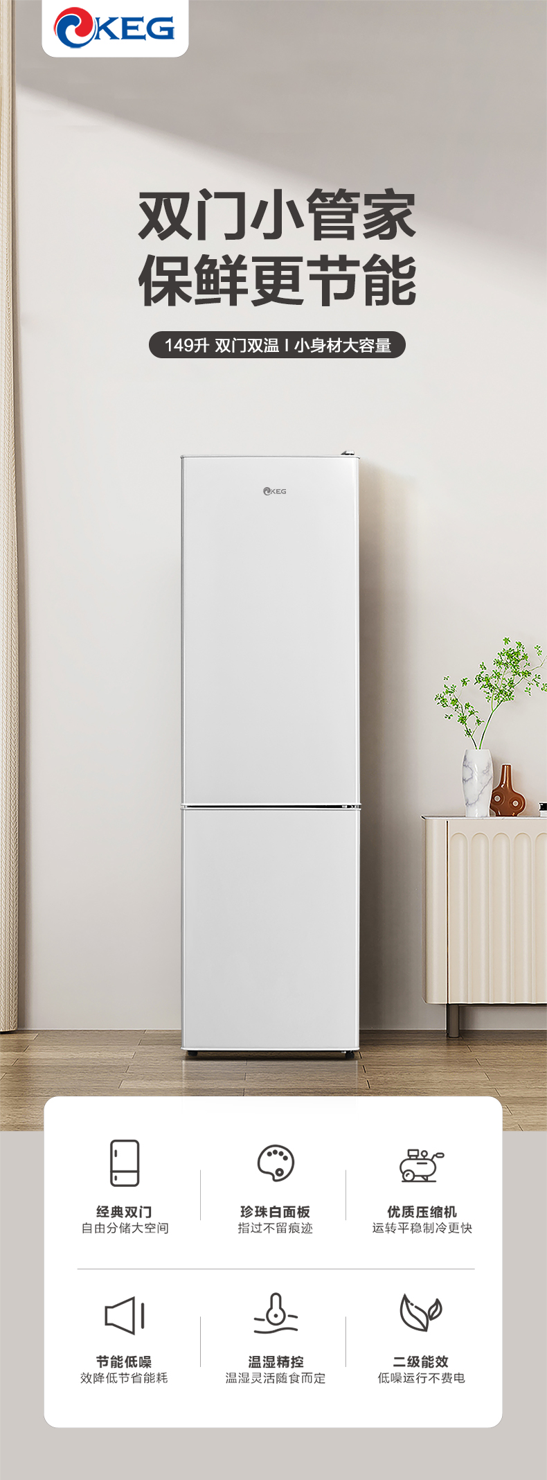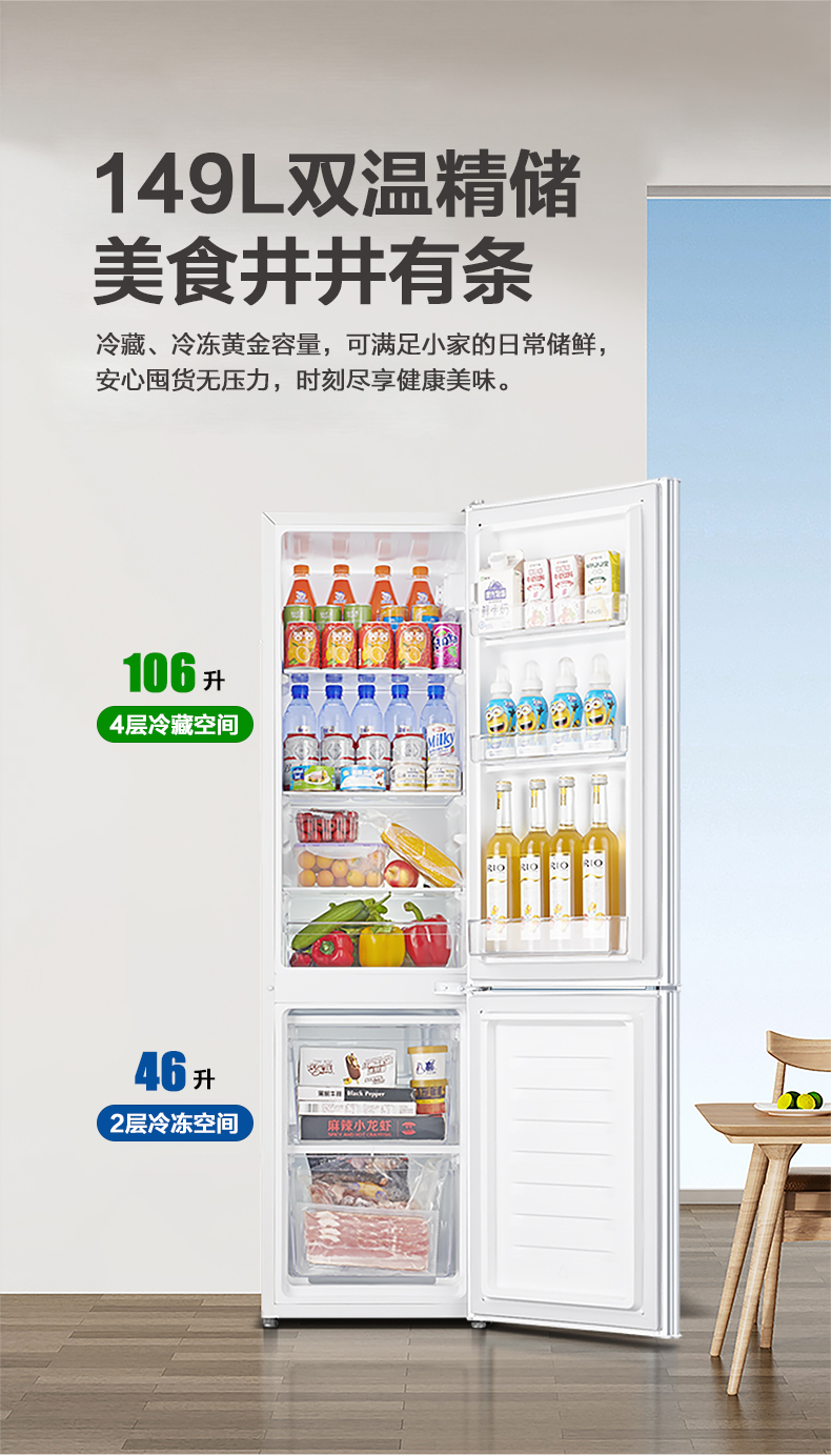 产品描述:韩电149升这款直冷双门小冰箱,以小巧精致的外观、高效节能的制冷性能和实用的双门设计。