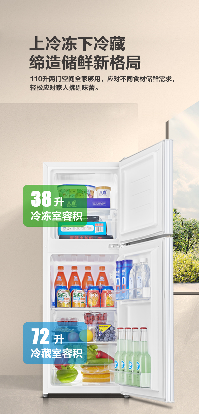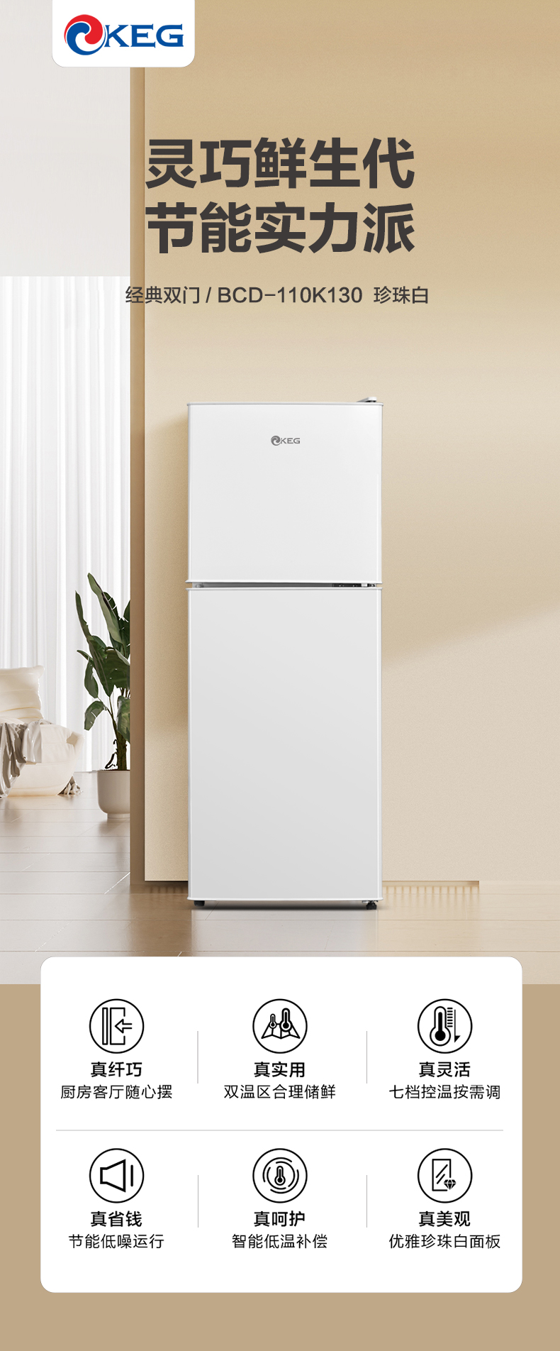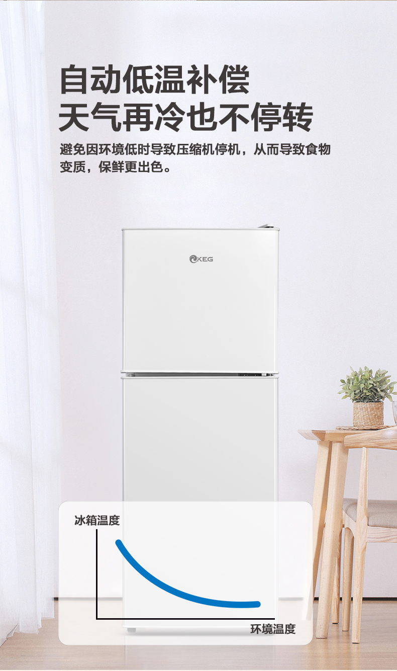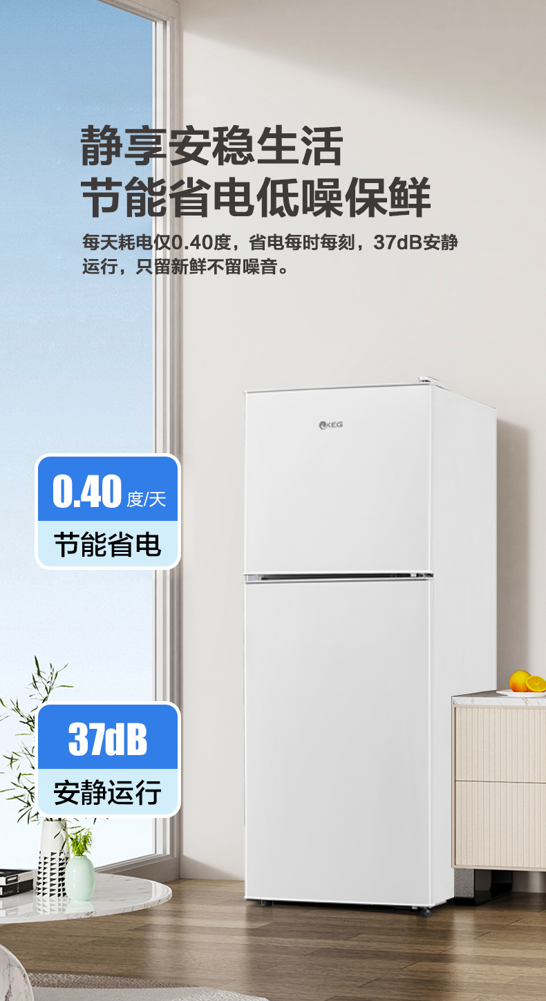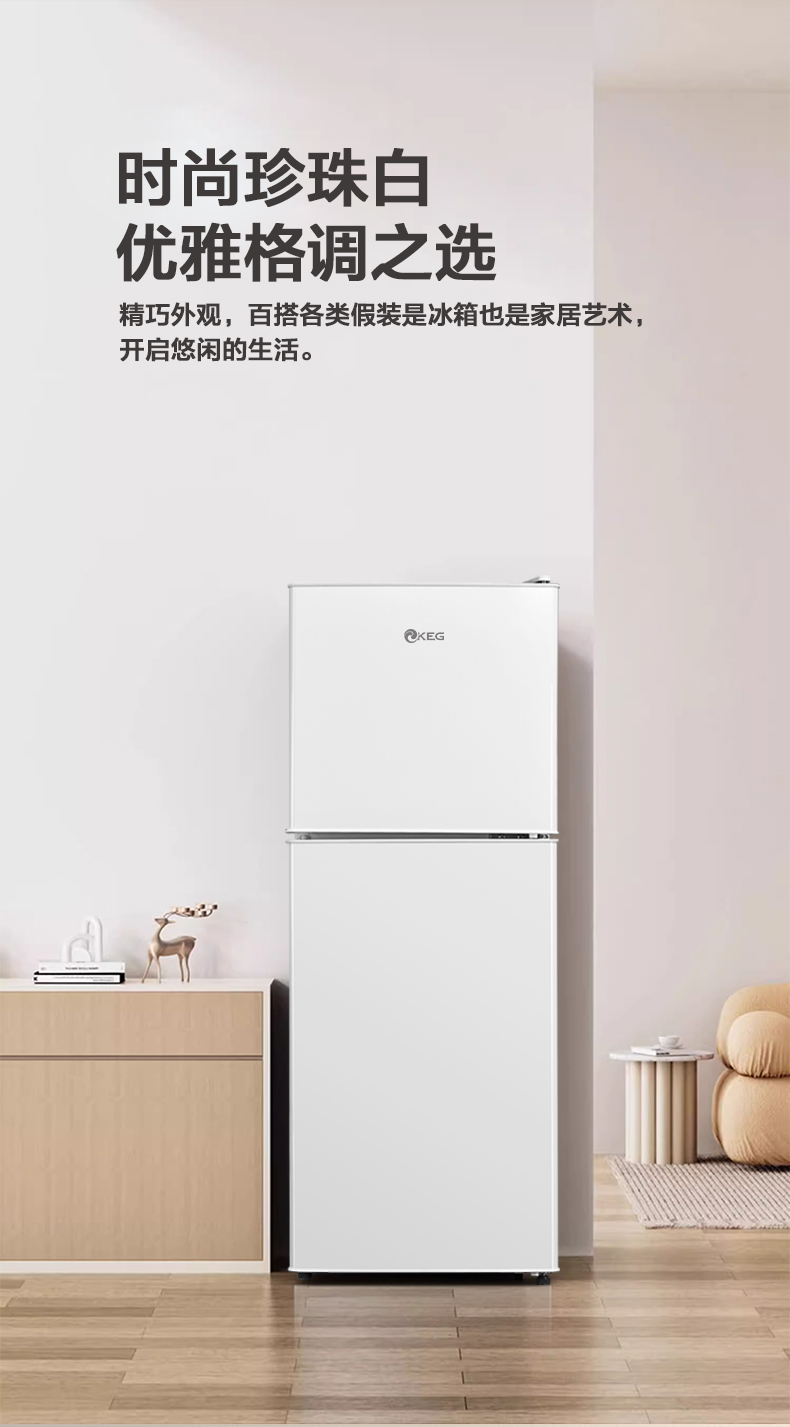 产品描述:韩电110升这款直冷双门小冰箱,以小巧精致的外观、高效节能的制冷性能和实用的双门设计。