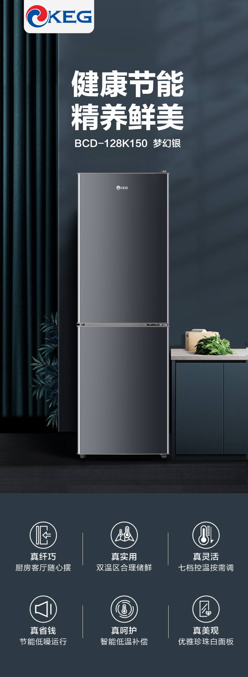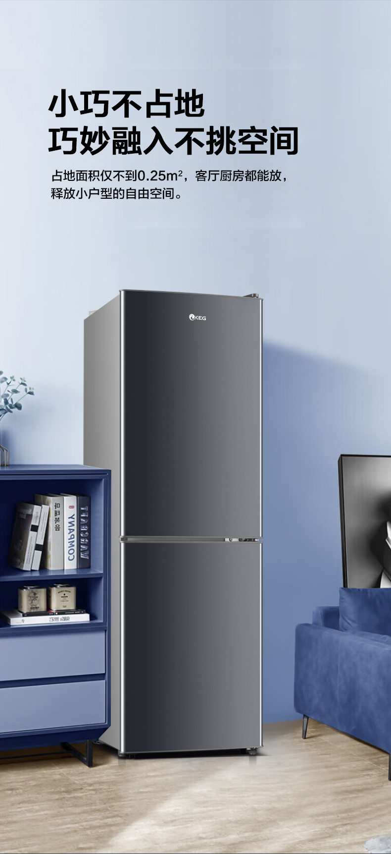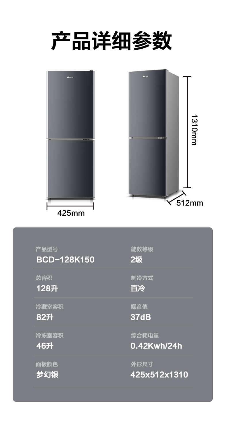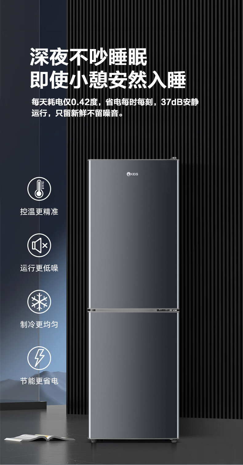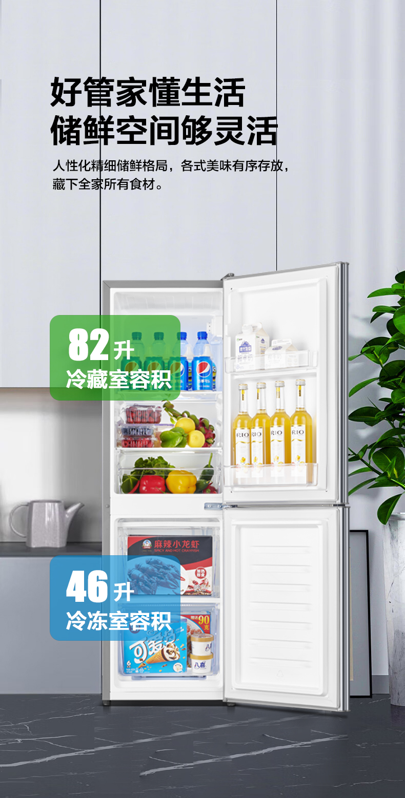 产品描述:韩电128升这款直冷双门小冰箱,以小巧精致的外观、高效节能的制冷性能和实用的双门设计。