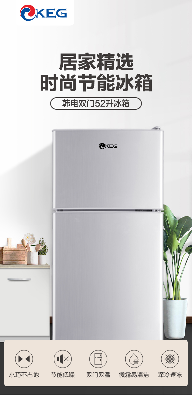 产品描述:韩电52升双门小冰箱具有高效的性能、节能环保的优点以及时尚的外观,成为了许多家庭和个人的理想选择。