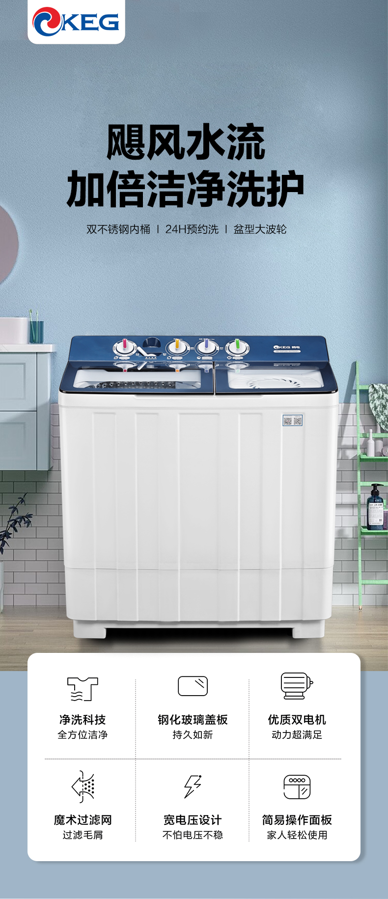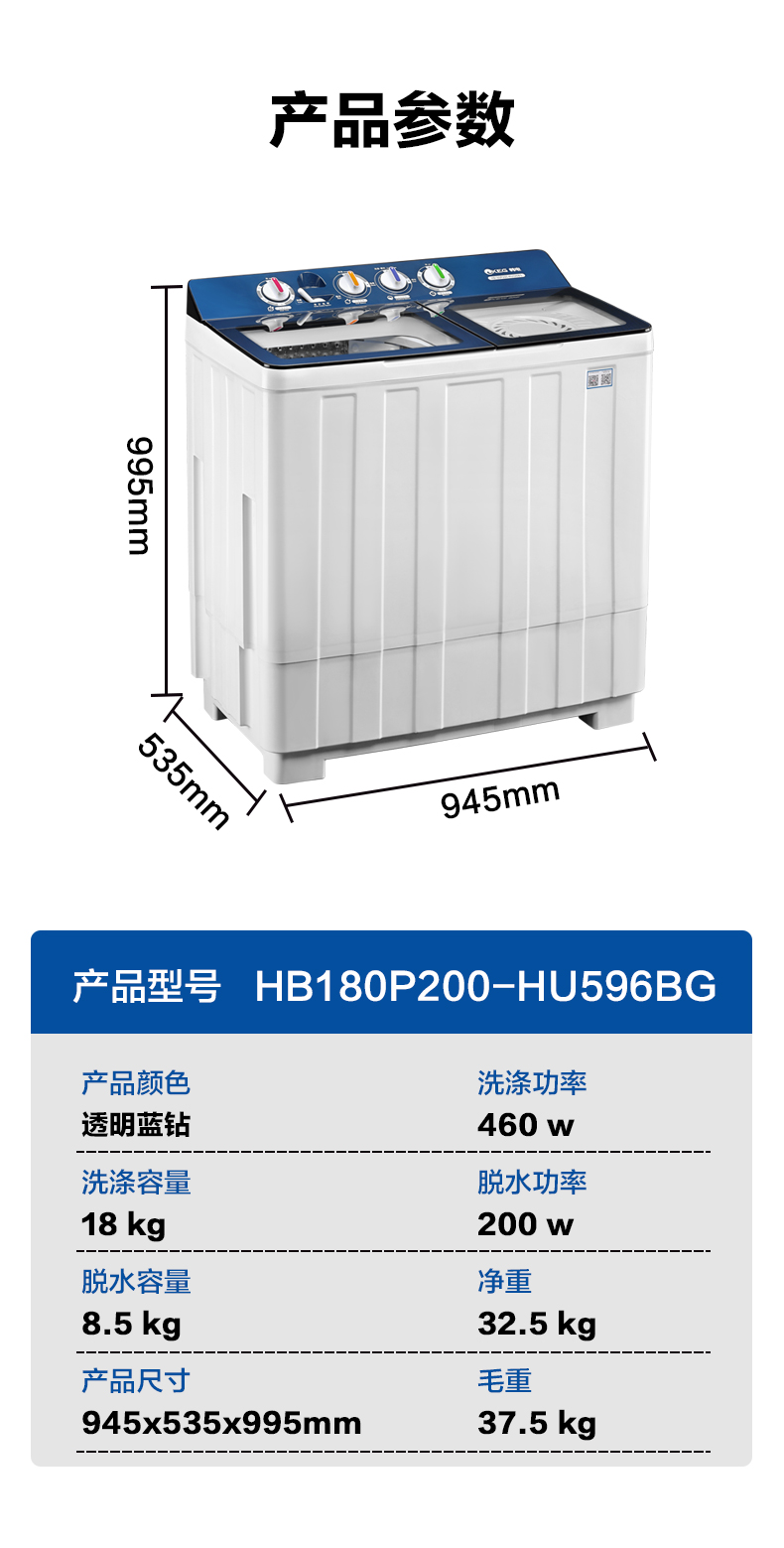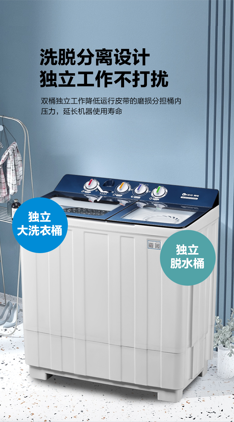 产品描述:韩电18公斤双桶洗衣机,以其超大容量能一次洗净超多衣物,双桶设计贴心实用,带来便捷分类洗涤体验,尽显出众品质。